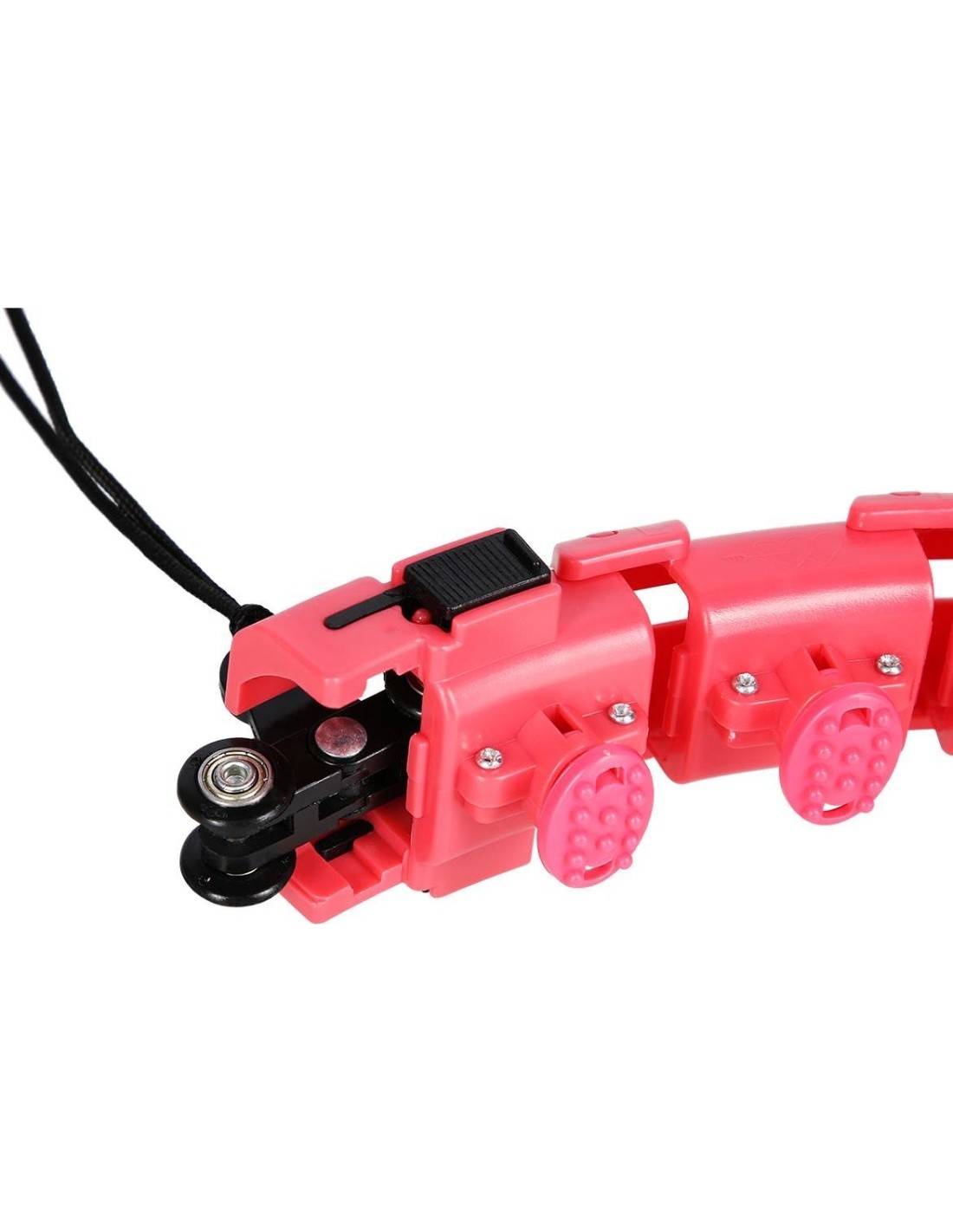 The loop is opened with magnet clips. Then, in order to connect the subsequent elements you need to slide one element into the other so that the tabs go into the corresponding holes. When reducing the elements, grab an element with one hand and squeeze in such a way as to slide the tabs out of the holes. Then insert the rail with the load into the loop, close the clips on the magnet, adjust the length of the belt and that's it.