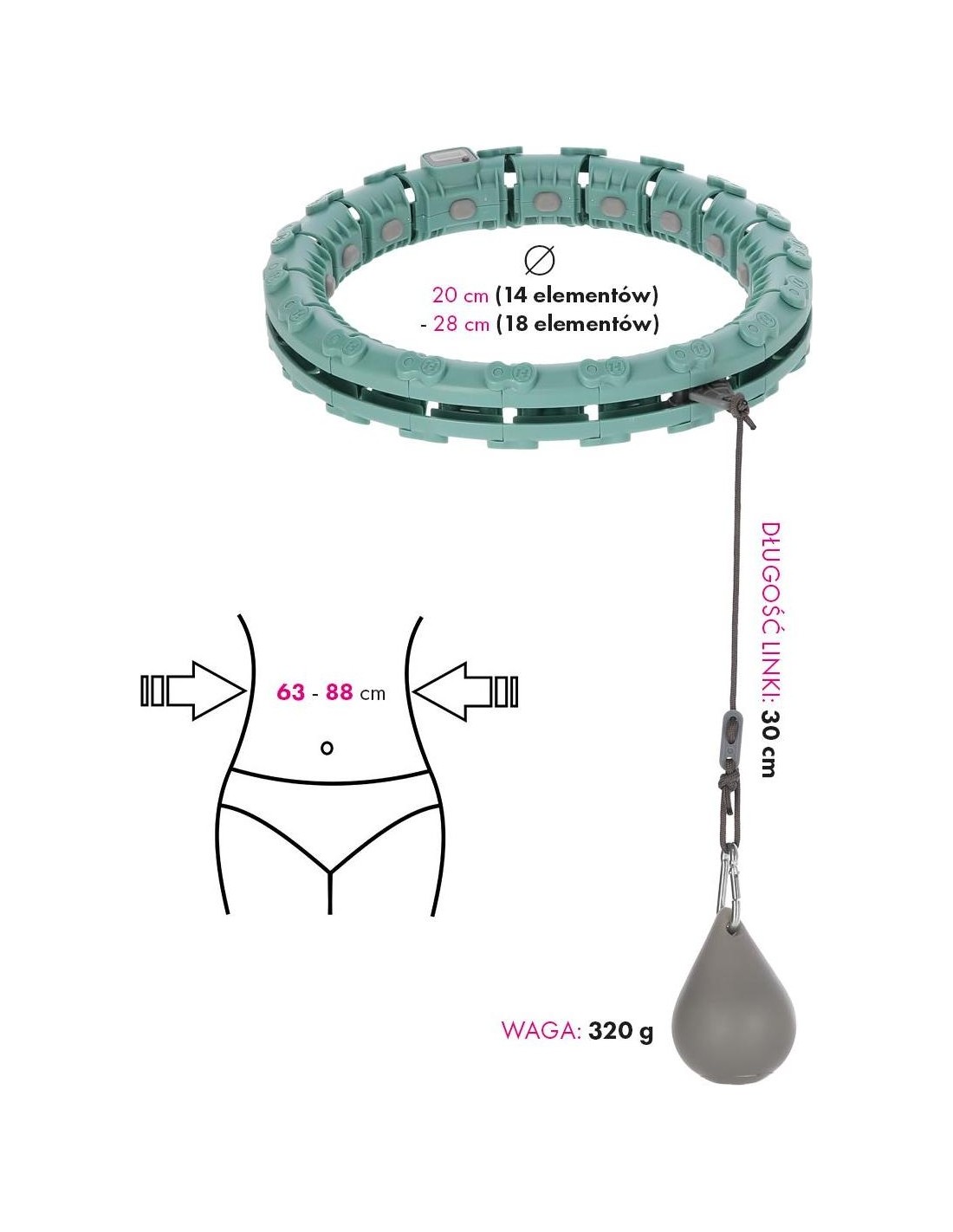 FH03 has 18 elements totally. The size can be set from 14 to 18 elements, that is, waist circumference from 63cm to 88cm.