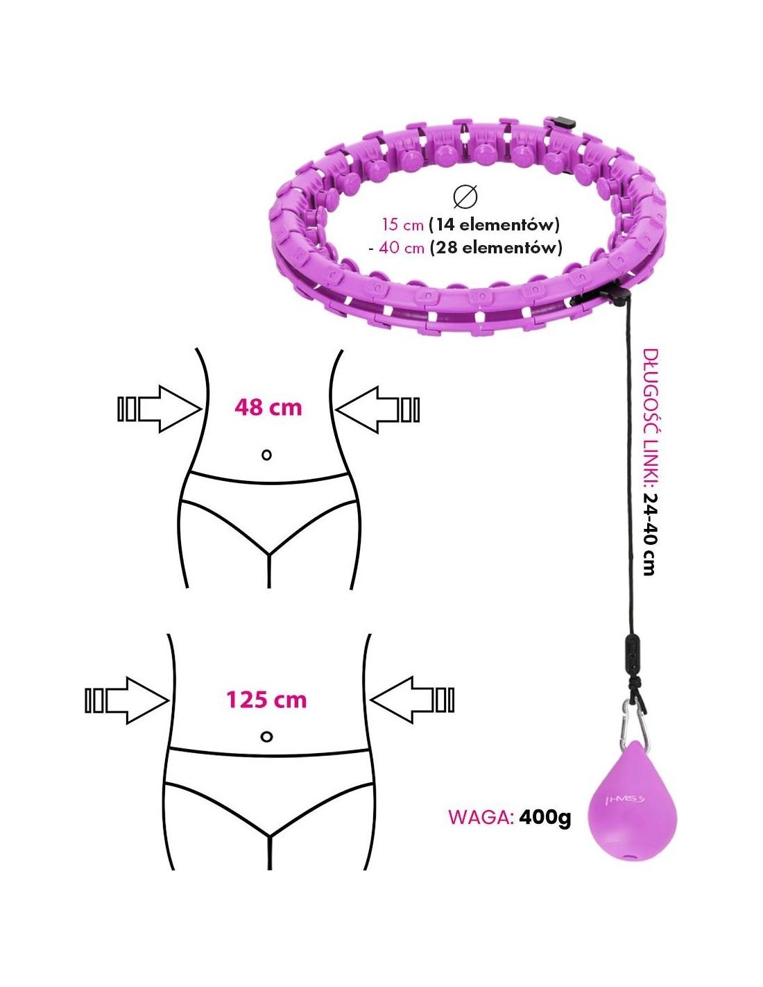 HHW12 PLUS SIZE FIOLETOWE HULA HOOP Z OBCIĄŻNIKIEM HMS