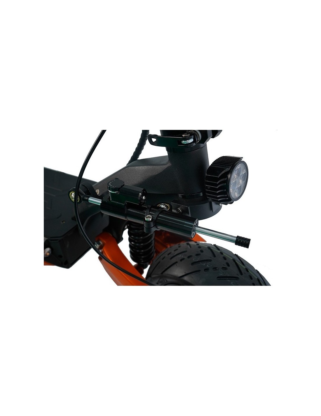 Šiuo elektriniu paspirtukas galėsite pakilti į 35° įkalnes. Amortizatoriai sušvelnina kelio nelygumus bei užtikrina išskirtinį patogumą važiuojant.
