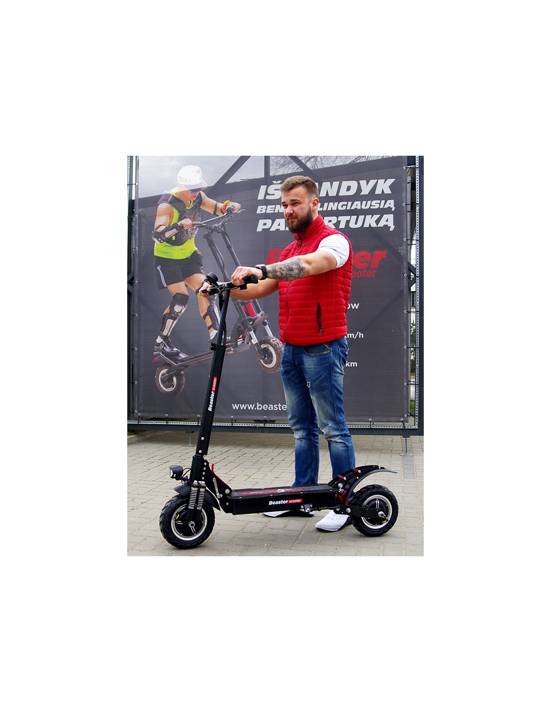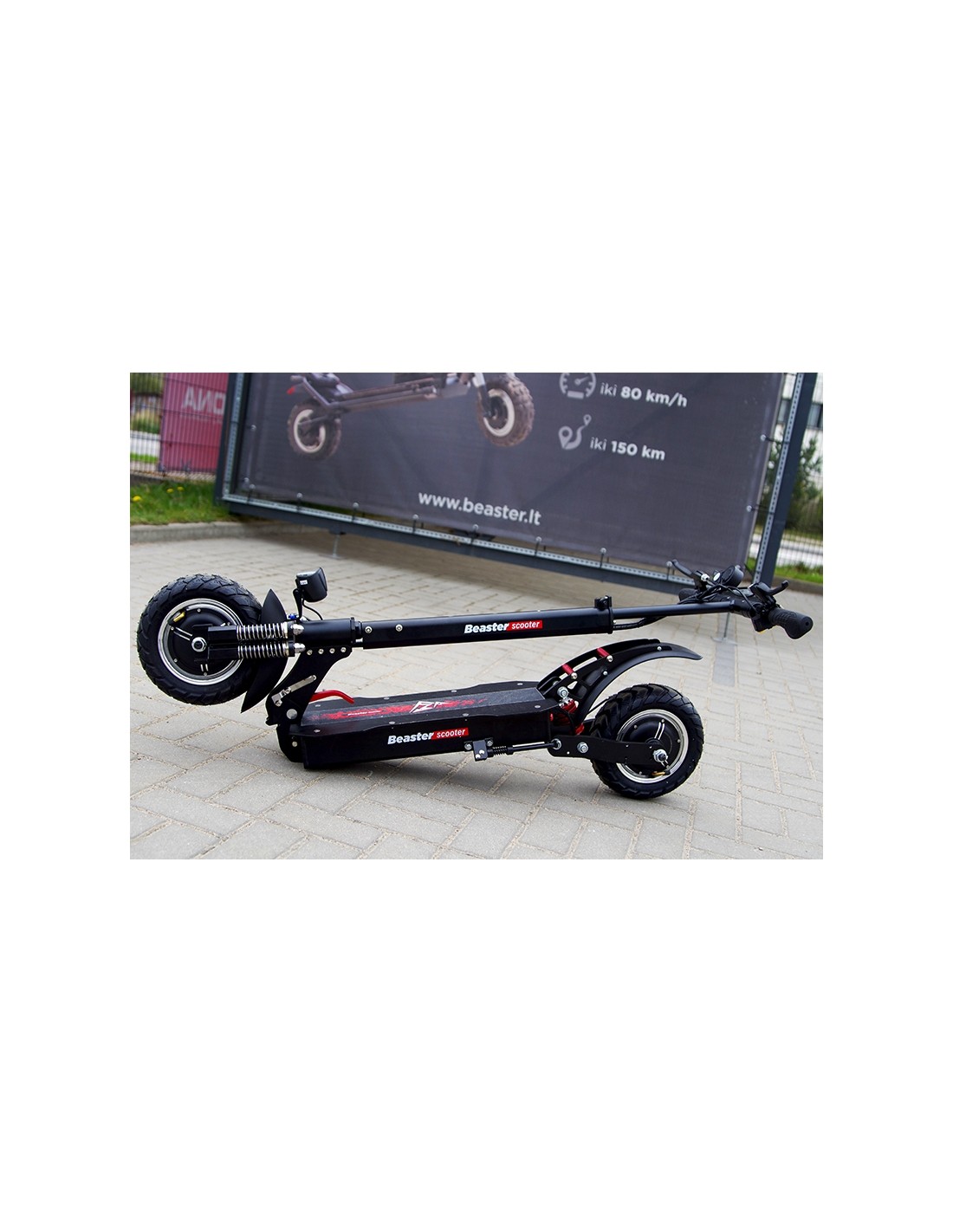 Beaster Scooter „BS11“ elektrinis paspirtukas išsiskiria savo galingu 2 x 1000 W bendro galingumo varikliu bei didelės talpos 48 V, 18 Ah baterija. Tai leidžia paspirtukui išvystyti didelį net iki 65 km/val greitį ir vienu įkrovimu nuvažiuoti iki 55–65 km atstumą. Prietaisas išsiskiria lengvu aliuminio rėmu, todėl paspirtuko svoris siekia tik 28 kg. Optimalaus 20,3 cm skersmens padangos padės užvažiuoti į 30–35° įkalnes, o patvari paspirtuko konstrukcija išlaikys iki 120 kg apkrovą.