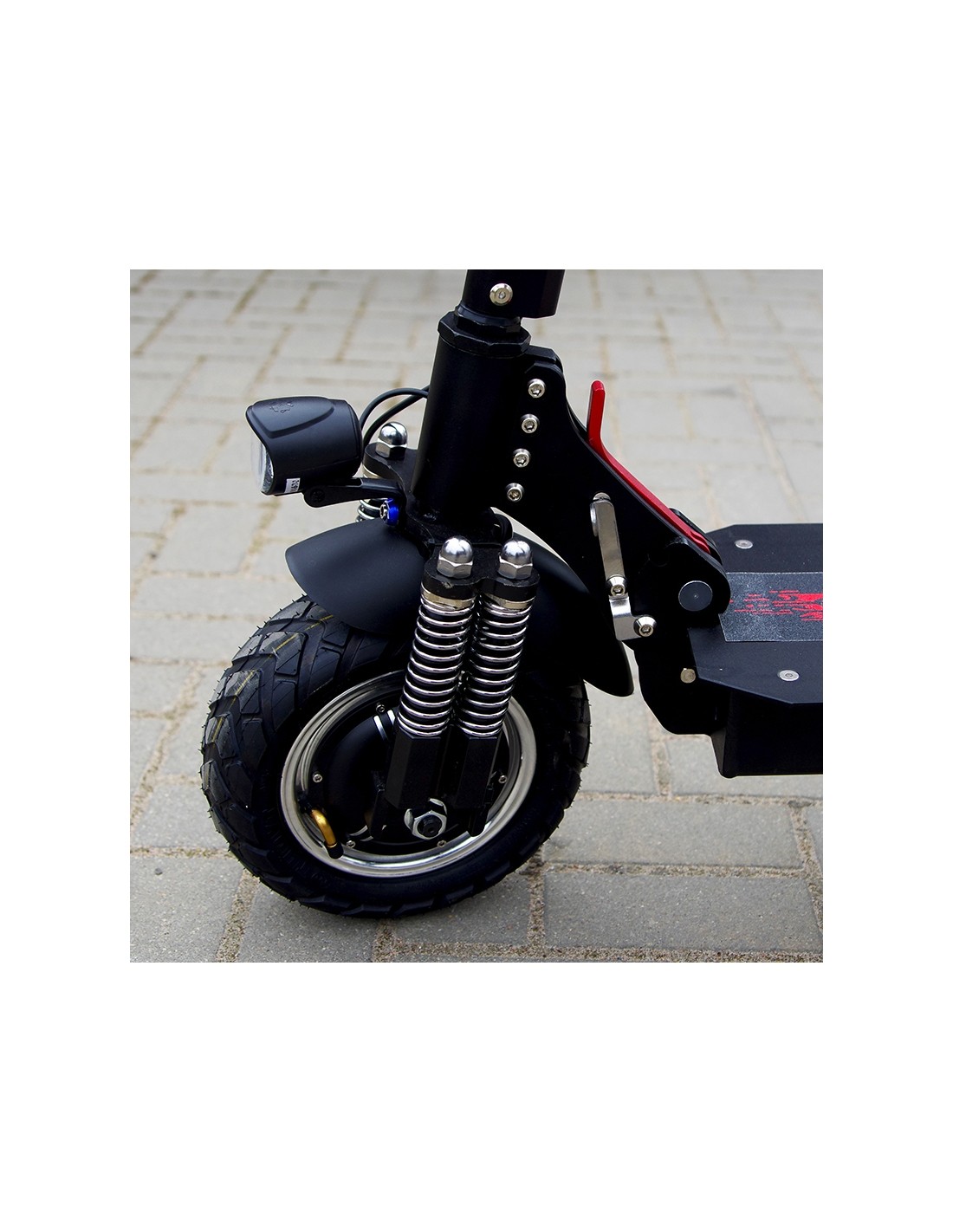 Šiuo elektriniu paspirtukas galėsite pakilti į 30–35° įkalnes. Amortizatoriai sušvelnina kelio nelygumus bei užtikrina išskirtinį patogumą važiuojant.