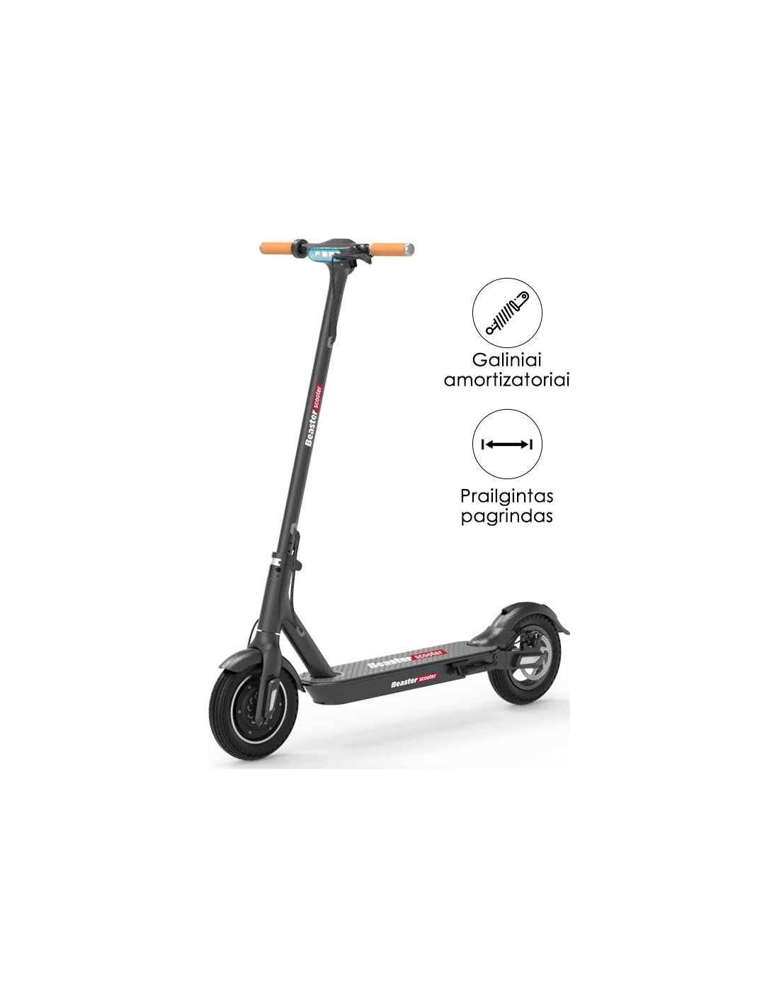 Šis modelis iš kitų paspirtukų išsiskiria turimais galiniais amortizatoriais. Važiuojant jie padės sugerti kelio nelygumus, o jūsų paspirtukas daug patogiau ir minkščiau važiuos, todėl pasivažinėjimas juo taps dar malonesnis.