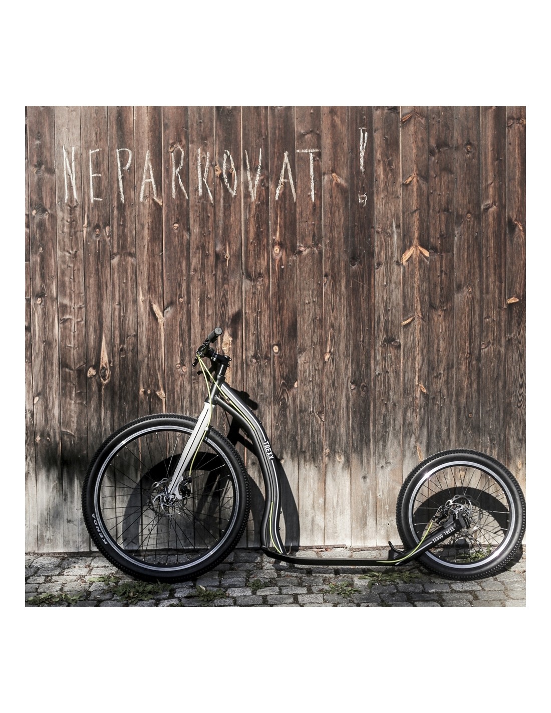 Pick a point on a map. Asphalt? Gravel? Serpentines? Mountains? A forest? Cat heads? No problem for the Kick Scooter Yedoo Trexx Disc 26/20”!