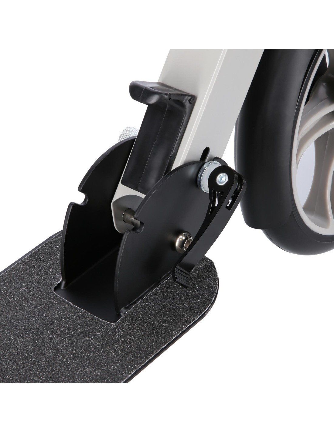 The scooter is great for recreational riding on asphalt, concrete surfaces, and paved sidewalks. The handlebar is equipped with rubber grips for a secure hold. The 3-step adjustment allows for height customization to the user's height. ABEC7 bearings and large wheels (200mm) enhance stability and smoothness of the ride, while a wide deck makes it easier to maintain balance. Additionally, a foot brake ensures maximum safety during the ride.