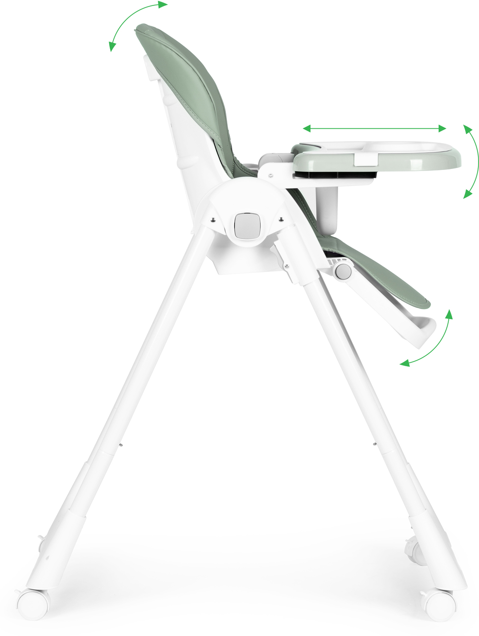 Siedzisko posiada możliwość zmiany wysokości, dzięki specjalnym przyciskom możesz w łatwy sposób podnieść je lub opuścić. Jeśli Twój maluch staje się samodzielny i nie musisz już bacznie go obserwować, niższe krzesełko będzie dla niego idealne.