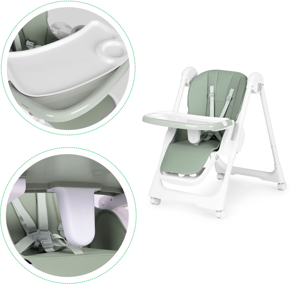 Krzesełko, poza ciekawym, nowoczesnym designem doskonale spełnia swoją funkcję gwarantując bezpieczną i wygodną pozycję podczas karmienia. Ułatwia małym dzieciom jedzenie razem z dorosłymi przy jednym stole, dzięki czemu już od pierwszych miesięcy dziecko obserwuje i uczy się właściwego zachowania.