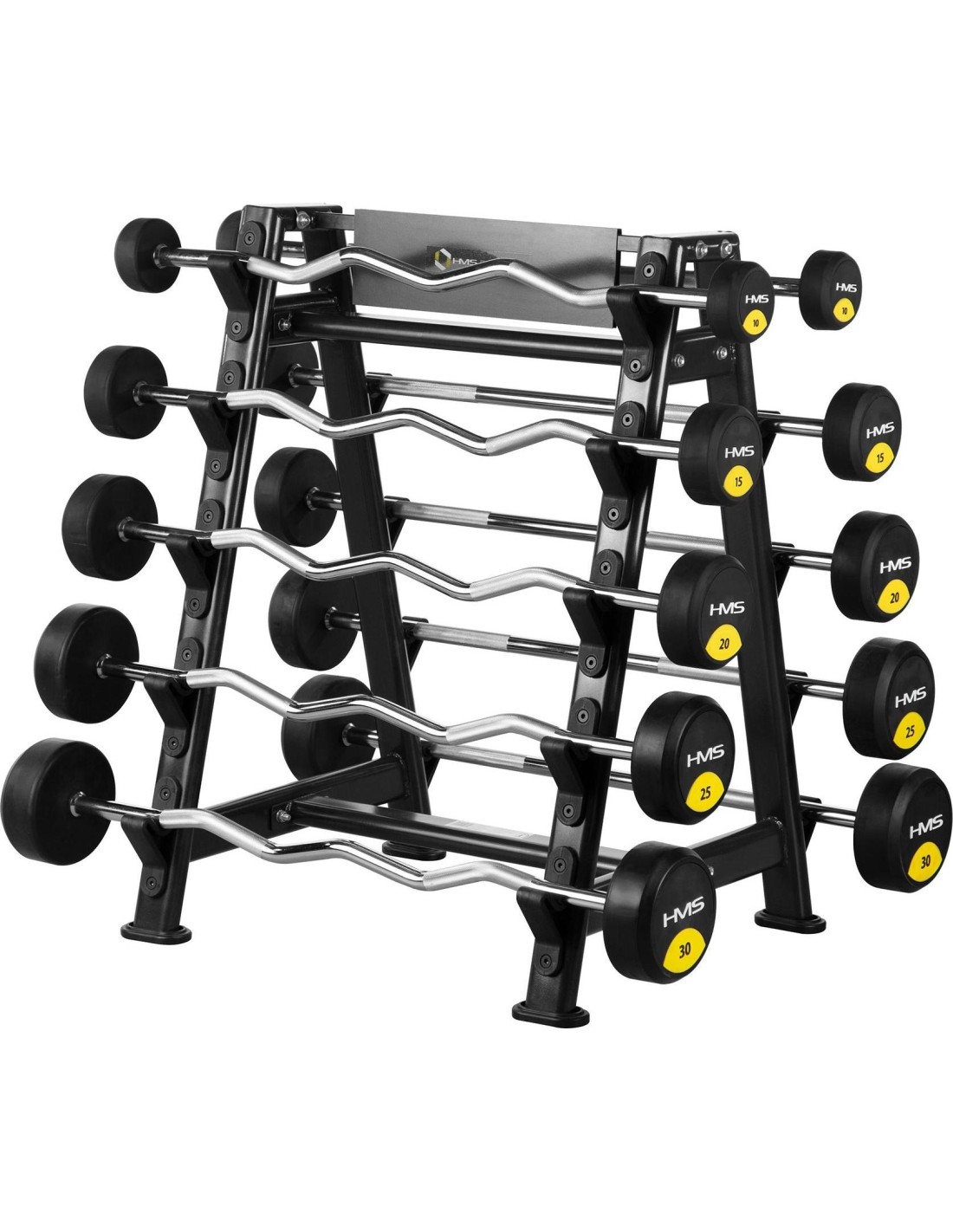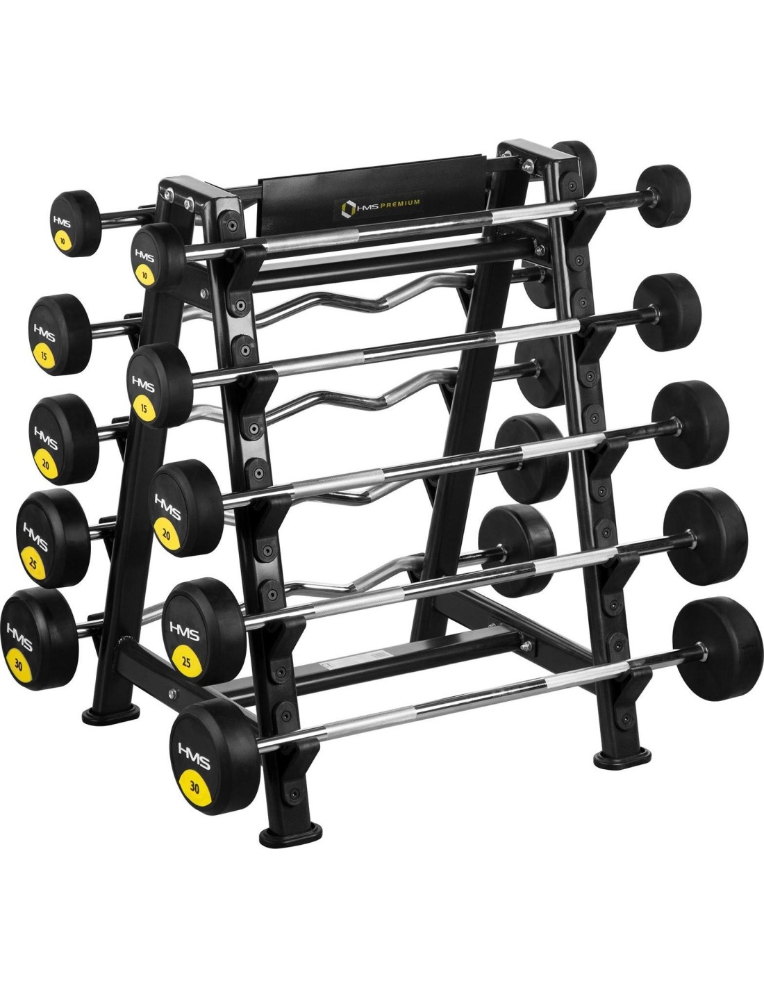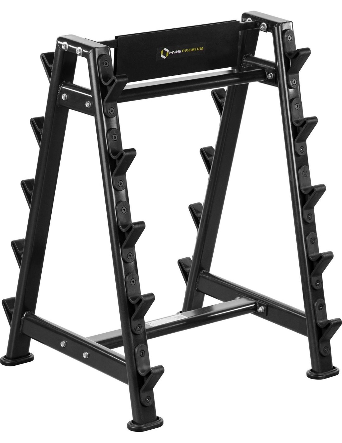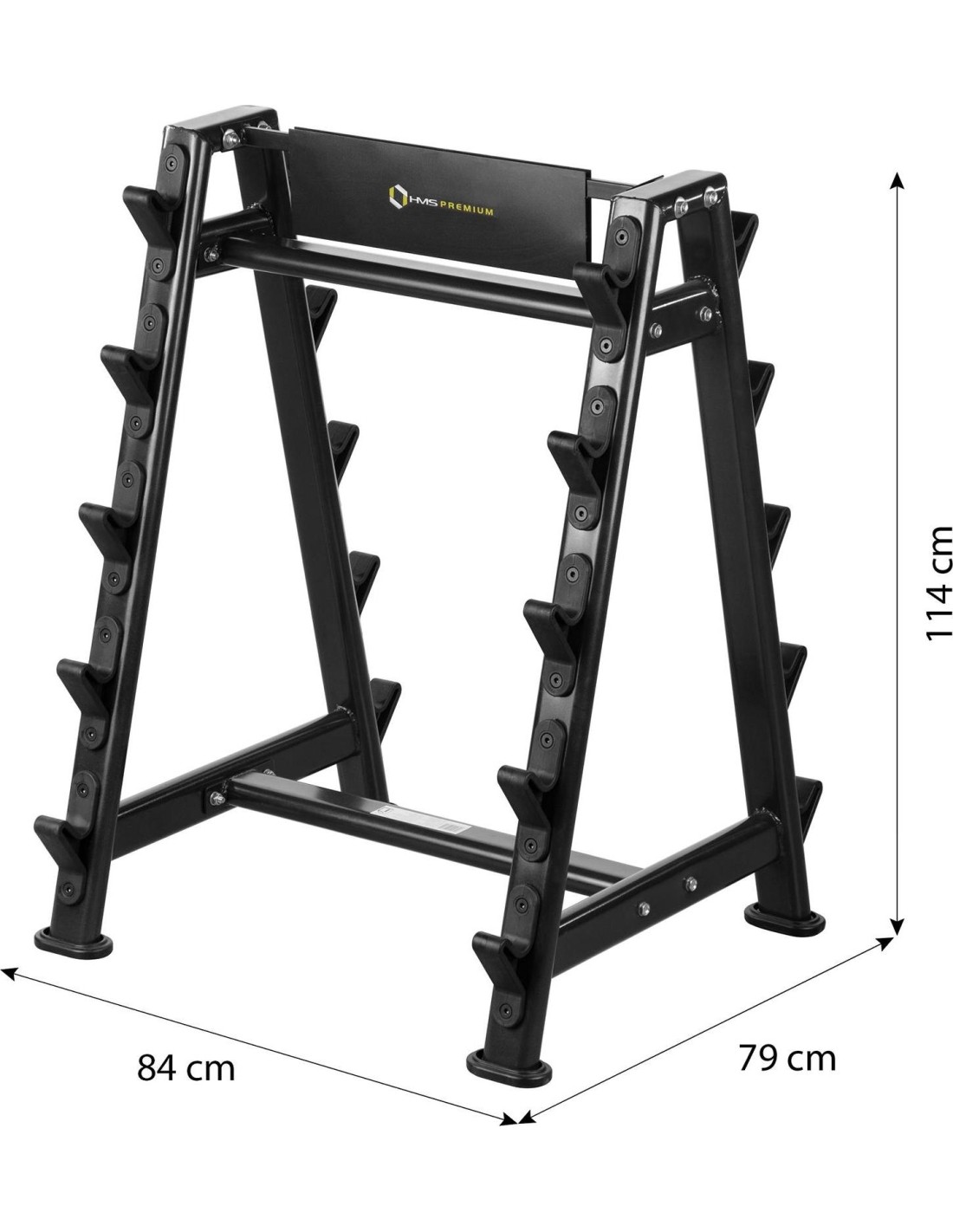 The more equipment you have, the more difficult it becomes to store it properly. HMS stands will help you collect all accessories in one place. STR05 HMS PREMIUM is a steel, two-sided barbell stand for barbells. It has been designed to make putting down and picking up of equipment easy and intuitive. It will ensure comfort during exercise. STR05 can hold 10 barbells. Its sturdy structure and high quality of manufacture ensure safety of users and the equipment. The stand set does not include barbells. Specification: Material: steel Dimensions: Length: 78 cm Width: 91 cm Height: 123.5 cm Place for 10 barbells Length of the pin: 7.5 cm Maximum permissible load: 300 kg Product weight: 28 kg Remarks: 24 months warranty