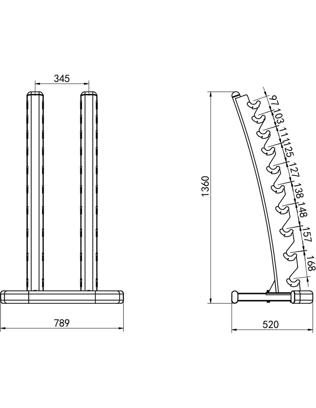 STR37 is a solid and functional dumbbell rack that allows you to conveniently store your training equipment in an organised and safe way. Thanks to its vertical design and capacity for up to 20 dumbbells, it takes up little space while providing quick and easy access to weights.