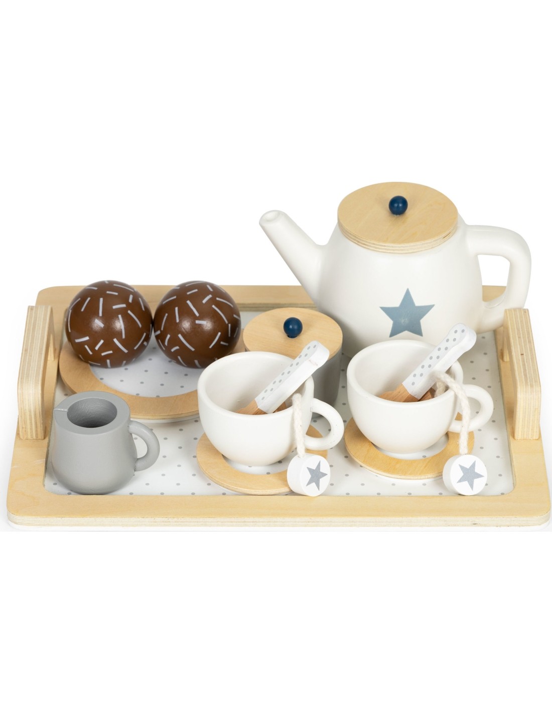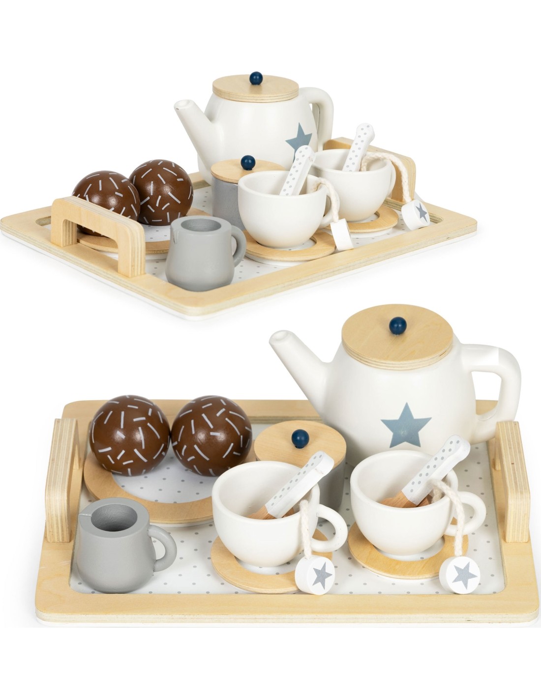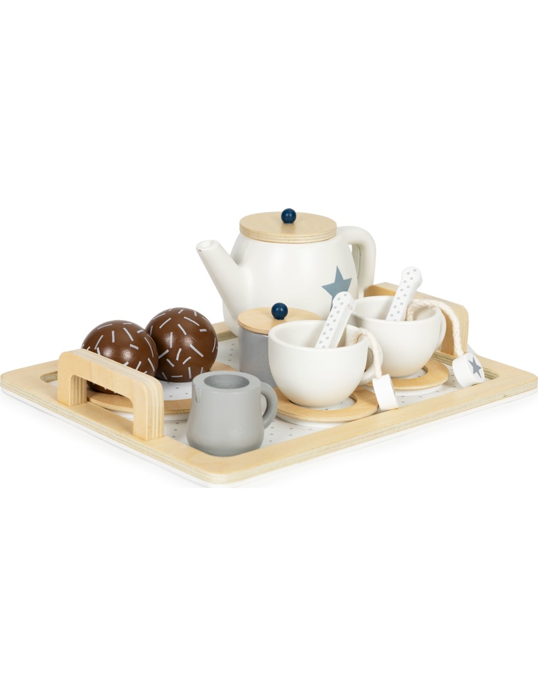 Dzięki zestawowi dziecko może wcielić się w rolę dorosłego i zaprosić na pyszną herbatę oraz słodkie przekąski. Poza dobrą zabawą, Twoja pociecha rozwinie wyobraźnię, zdolności manualne, a także dowie się jak przygotować herbatę i pozna zasady panujące przy stole.