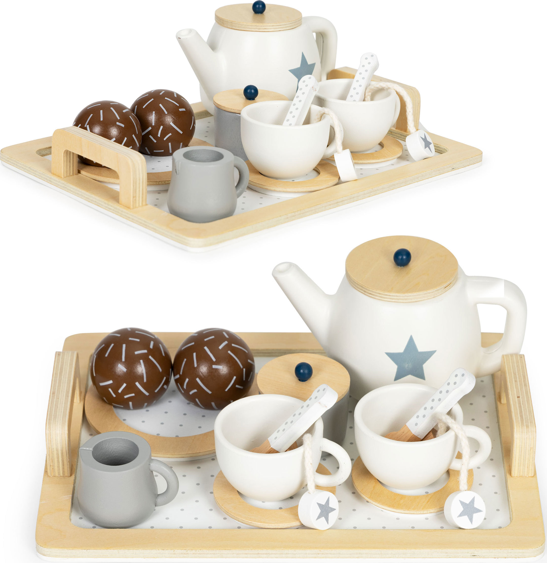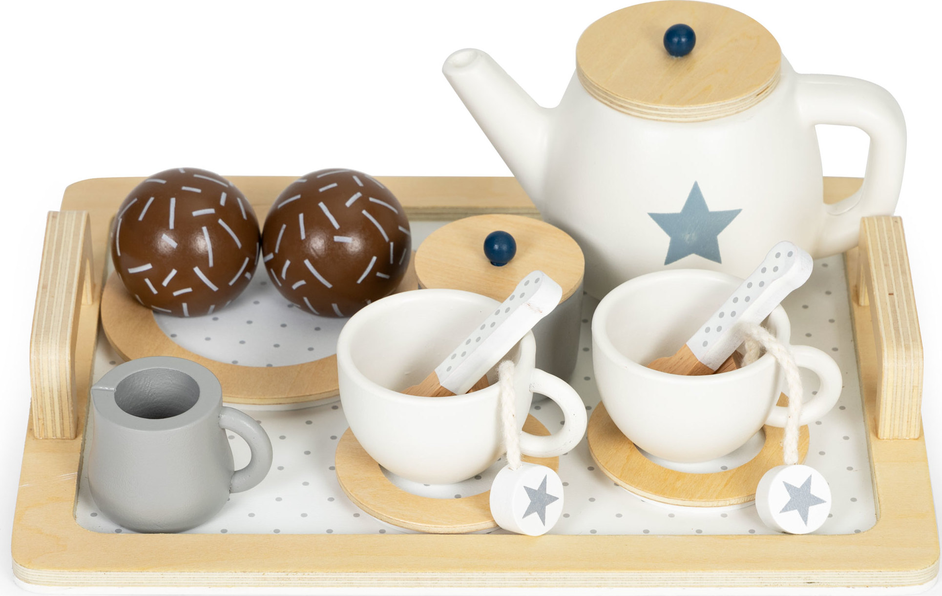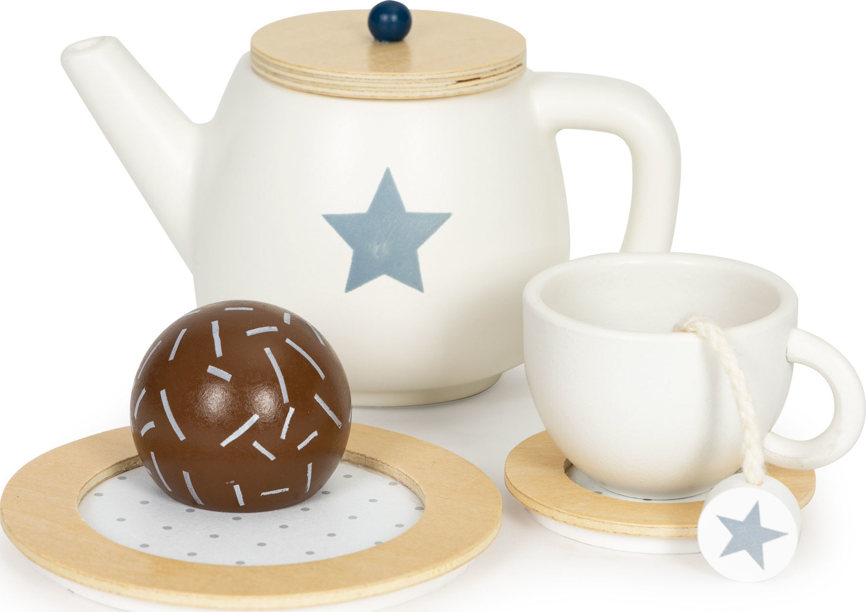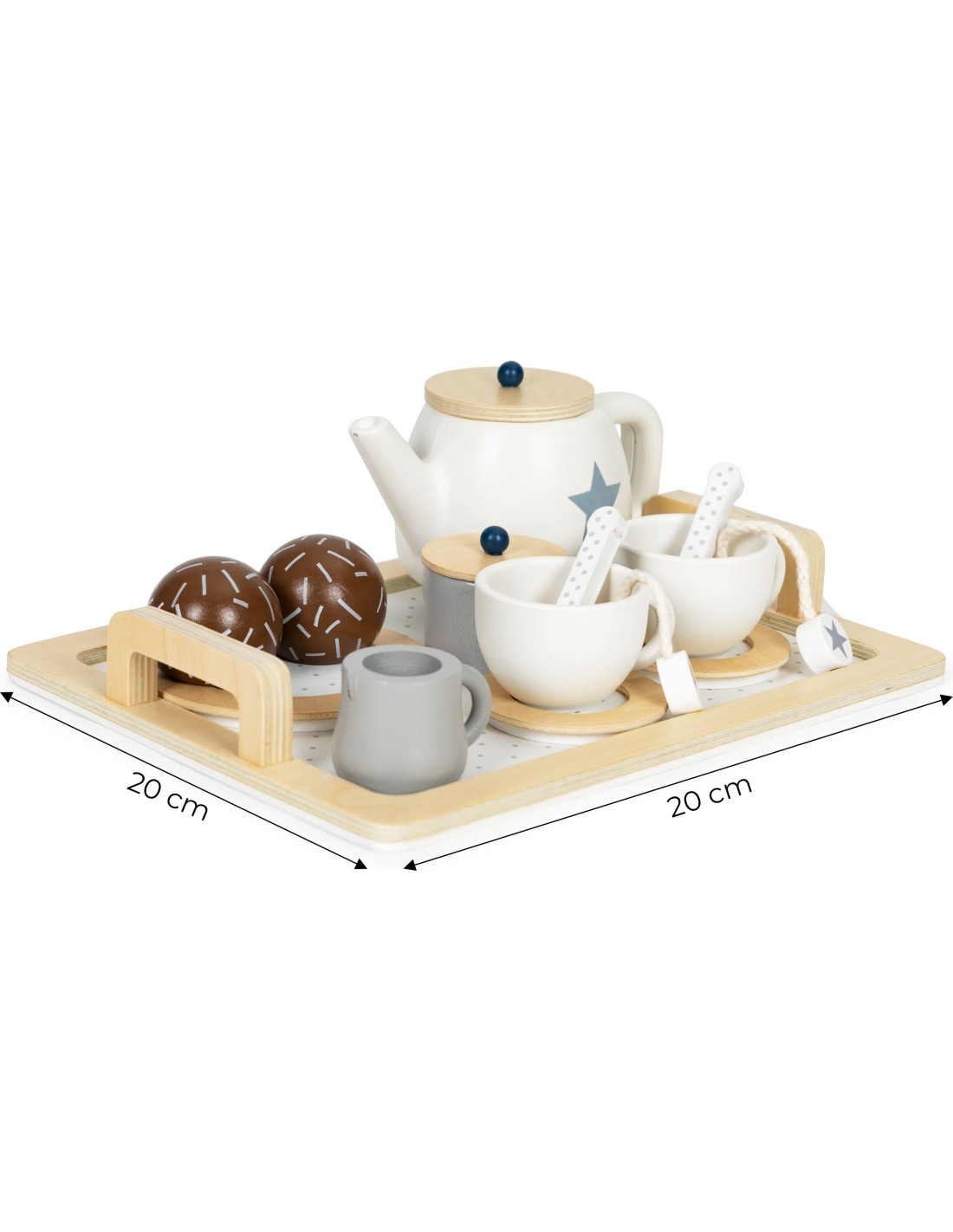 Dzięki zestawowi dziecko może wcielić się w rolę dorosłego i zaprosić na pyszną herbatę oraz słodkie przekąski. Poza dobrą zabawą, Twoja pociecha rozwinie wyobraźnię, zdolności manualne, a także dowie się jak przygotować herbatę i pozna zasady panujące przy stole.