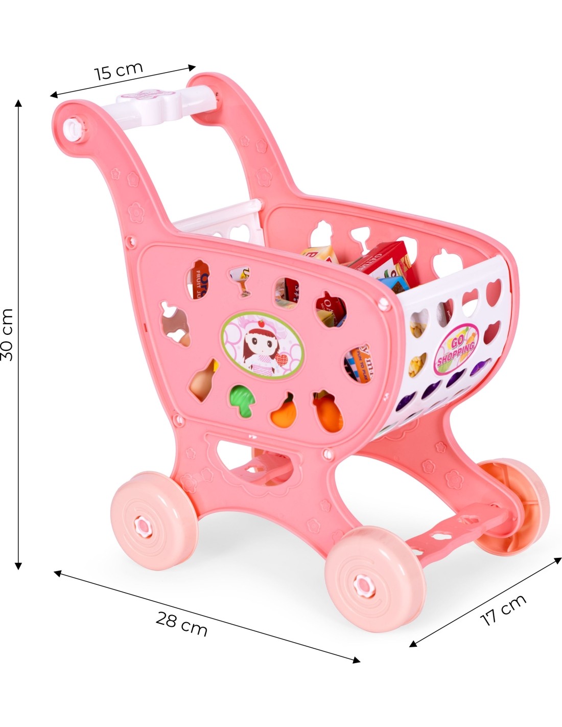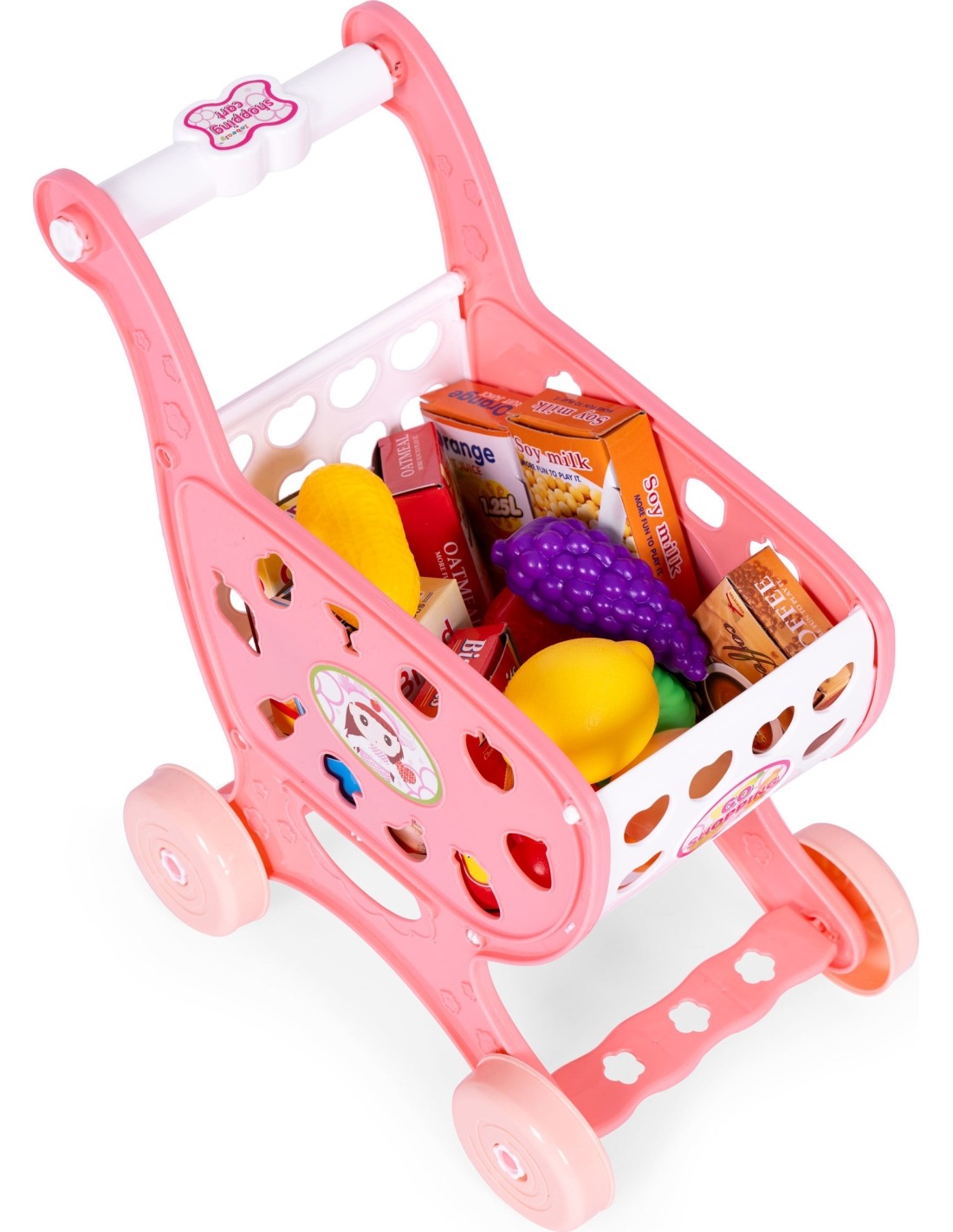 Zabawkowy wózek sklepowy wraz z zestawem produktów spożywczych, przeniesie maluchy do fascynującej roli małych kupujących i sprzedawców. Ten kompletny zestaw zachęca do rozwijania umiejętności społecznych i kreatywności, oferując dzieciom niezapomnianą przygodę w świecie zakupów.