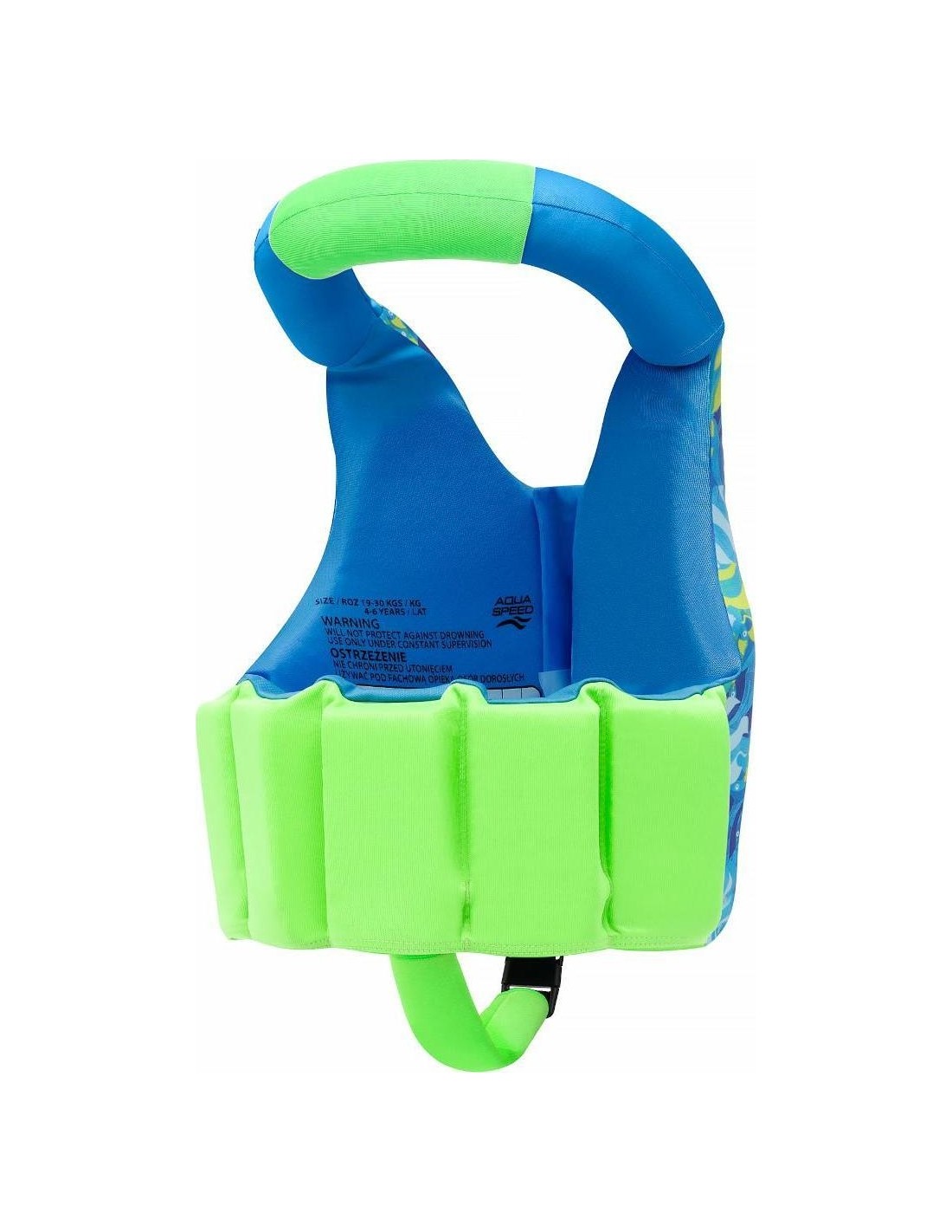 Aqua Pals Aqua Speed foam vest with colourful patterns is the perfect choice for little water adventure enthusiasts. Intense colours of the vest attract the attention of children and adults. With maximum safety in mind, the vest is made of the highest quality materials. Our swimming vest is a comfortable support for learning to swim, which provides freedom of movement and helps children gain confidence in contact with water. It allows your child to learn to swim by keeping them afloat. An additional advantage is the foam collar that supports the child's head. Properly worn and fitted, the vest provides optimal buoyancy. As the child's confidence and swimming skills grow, the individual foam blocks on the back of the vest can be removed, reducing its buoyancy. The Aqua Pals Aqua Speed foam vest is not only a safety tool, but also an attractive piece of equipment for any little swimmer. Its colourful, friendly design and sturdy construction make it an ideal choice for parents concerned about their children's safety in the water. Product highlights: High-quality materials ensure great buoyancy The collar supports the child's head, keeping it above the water Adjustable buoyancy Ergonomic and lightweight design that does not restrict movement Easy-to-use and secure fasteners Buckles with extra security to prevent accidental unfastening Eye-catching colourful and attractive design, Additional security in the form of a crotch strap Quick-drying material Ideal for learning to swim and playing in the water Perfect for the pool, beach and garden pool Composition: 100% Polyester, filling 100% Polyethylene