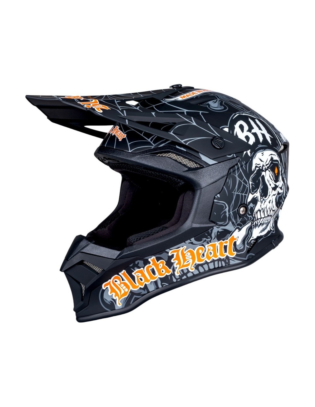 The Motocross Helmet W-TEC Black Heart Harzdorf will especially please motocross fans who also appreciate chopper themes and aesthetics. The helmet perfectly combines stylish graphics by the Black Heart designer brand with a strict, aggressive shape and modern workmanship that meets the latest manufacturing and safety standards – especially the ECE R-22.06 certification.