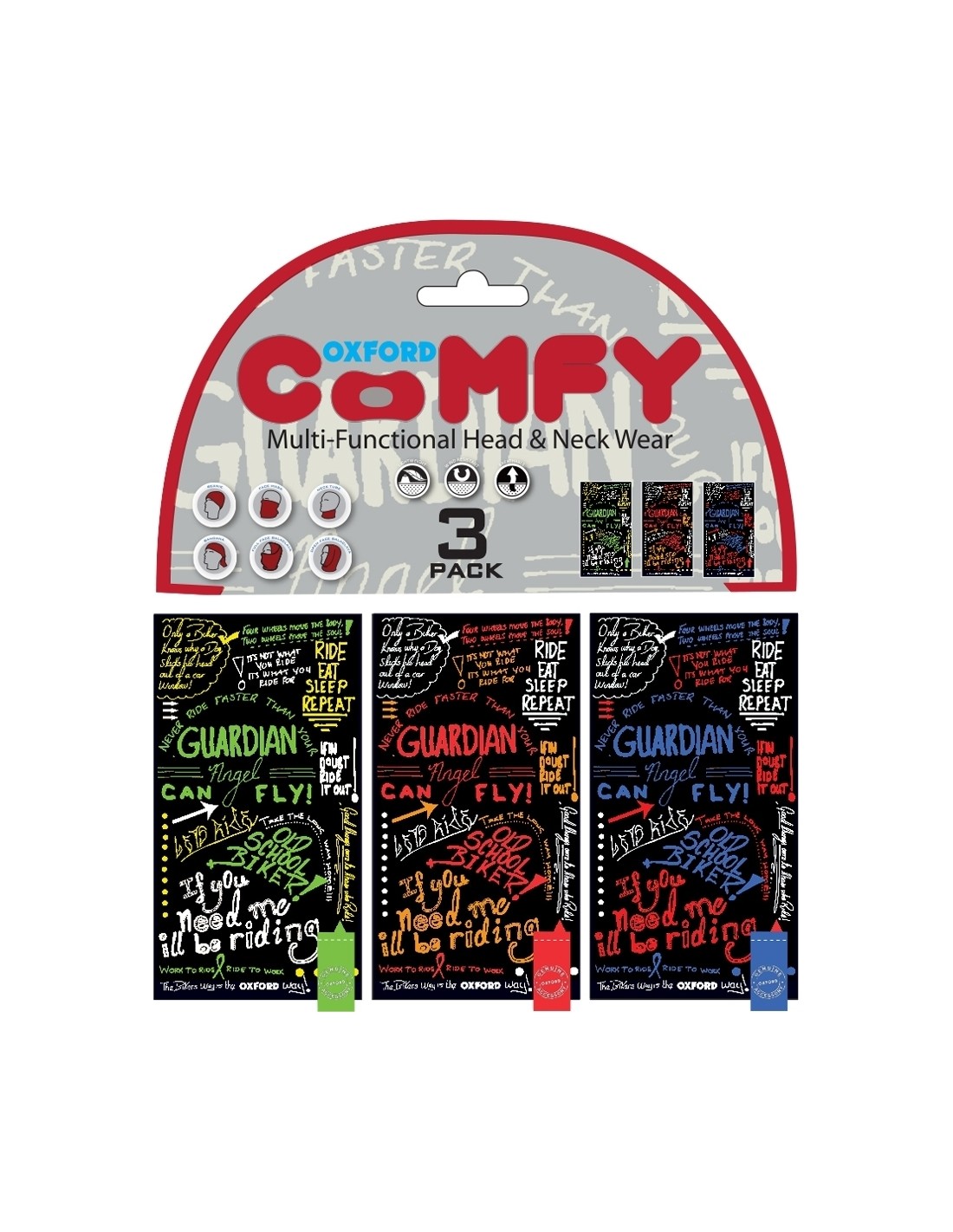 Uniwersalny wielofunkcyjny ocieplacz na szyję Oxford Comfy 3-Pack to zestaw 3 ocieplaczy na szyję, które mają za zadanie ogrzać Twoją szyję i głowę. Wykonany z przyjemnych materiałów, ocieplacz zapewnia wysoki poziom komfortu. Jest praktyczny, łatwy w przechowywaniu i nadaje się do wszelkiego rodzaju aktywności na świeżym powietrzu. Dlatego też jest popularny wśród rowerzystów. Może być używany jako szalik, kominiarka, opaska na głowę, czapka z kapturem, gumka itp.