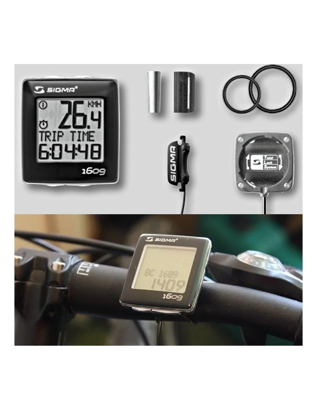 Komputer rowerowy Sigma BC 1609 // przewodowy, 16 funkcji (czarny/srebrny)