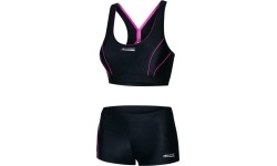 This fabulously colorful two piece is an ideal choice for style conscious swimmers. Wide rubber underbust and sturdy X shape back as well as double lining provide secure yet comfortable fit and allow a full arms movement (sizes 36 - 42 are available with removable cups). The medium leg swim shorts, provide good coveridge and comfortable fit. New generation Vita fabrics used in Fiona costume is soft to touch yet extremely resilient to chlorine and wear and tear. This two piece will give you a sporty look and is an excellent choice for swimming, aqua aerobics, watersports as well as beach holiday. This swimwear is made of innovative Vita fabric. This hi-tech fabric is UV-and ultra-chlorine resistant, flat and very soft, pleasant in touch and comfortable to wear. VITA provides great muscle control (reduces production of lactic acid in muscles) for enhanced swim training and performance. It also boasts great shape retention and coverage. Its great durability and resistance to fibre breakage (when exposed to chlorine for long periods of time) gives it an extra-long pool life without significant loss of properties. VITA is also highly resistant to degradation from sun creams and oils, which makes it perfect for beachwear. Made of: 22% Xtra Life Lycra® fibre, 78% Regenerated Polyamide. Here are the exclusive benefits offered by Vita: Thinner than the classic charmeuse (thickness reduced by around 20%). More compact (does not show the typical channeling of non-run fabrics). Smoother and softer - thanks to the use of Multifilament Polyamide. Outstanding power - high modulus for greater tensile strength. Excellent shape retention and fit thanks to the use of XTRA LIFE LYCRA® fibre. Ultra chlorine resistant Resistant to sun creams and oils damaging influence