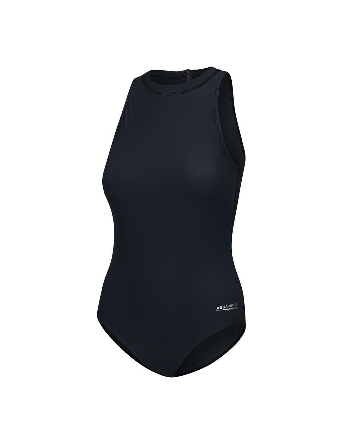 The Blanka Zipped High Neck Swimsuit from Aquaspeed is a sleek swimming costume in black or navy. The high performance design gives a perfect fit for leisure swimming as well as training. Blanka is made of Revolutional Energy fabrics with increased resistance to chlorine. Properties of the fabric REVOLUTIONAL ENERGY: An ultra-flat techno-fabric with a high shaping power, it fits the body like a second skin, offering correct muscular support while embracing the body for an outstanding shapewear effect. The muscular compression guaranteed by the extraordinary elasticity of the fabric, decreases the production of lactic acid, reduces muscular strain and improves athletic performance. Revolutional Energy provides great coverage, it is pilling resistant yet breathable and quick drying. Excellent UV protection and sand resistance (does not trap grains of sand between fibres) as well as its very high chlorine resistance means that swimwear made of Revolutional Energy is suitable both for beach and pool use. Two-way stretch makes swimwear made of this revolutionary fabric comfortable to wear. Ultra flat and smooth Very opaque High density provides body shaping effect Highly pilling and abrasion resistant Stretches in length and width Retains shape after multiple use Perfect fit, feels like second skin Muscle support - Excellent UV protection Sand resistant Quick drying and very breathable