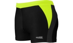 High quality, tri coloured swim trunks with contrasting side panel and belt. Medium leg length, inner drawstring, full front lining and high chlorine resistance, thanks to Vita fabrics. Dennis swim trucks provide a perfect fit and are ideal for training and fitness swimming as well as for beach use. Properties of the fabric VITA: This swimwear is made of innovative Vita fabric. This hi-tech fabric is UV-and ultra-chlorine resistant, flat and very soft, pleasant in touch and comfortable to wear. VITA provides great muscle control (reduces production of lactic acid in muscles) for enhanced swim training and performance. It also boasts great shape retention and coverage. Its great durability and resistance to fibre breakage (when exposed to chlorine for long periods of time) gives it an extra-long pool life without significant loss of properties. VITA is also highly resistant to degradation from sun creams and oils, which makes it perfect for beachwear. Made of: 22% Xtra Life Lycra® fibre, 78% Regenerated Polyamide. Here are the exclusive benefits offered by Vita: Thinner than the classic charmeuse (thickness reduced by around 20%). More compact (does not show the typical channeling of non-run fabrics). Smoother and softer - thanks to the use of Multifilament Polyamide. Outstanding power - high modulus for greater tensile strength. Excellent shape retention and fit thanks to the use of XTRA LIFE LYCRA® fibre. Ultra chlorine resistant. Resistant to sun creams and oils damaging influence.
