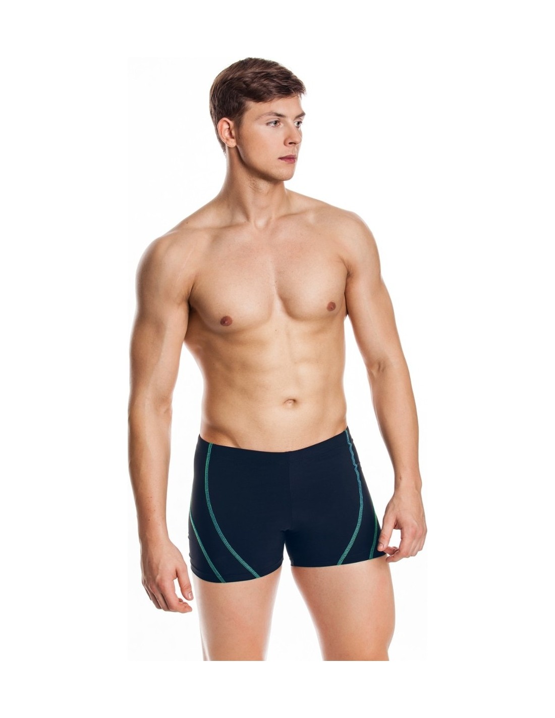 This stylish aquashort by Aqua Speed comes in black with red, green or white stitching on sides. Made with Revolutional Energy fine but strong fabrics Ryan aquashort gives a comfortable and close fit (with inside front lining and internal drawstring) and high chlorine resistance for regular swim training, active swimming and fitness. Properties of the fabric REVOLUTIONAL ENERGY: An ultra-flat techno-fabric with a high shaping power, it fits the body like a second skin, offering correct muscular support while embracing the body for an outstanding shapewear effect. The muscular compression guaranteed by the extraordinary elasticity of the fabric, decreases the production of lactic acid, reduces muscular strain and improves athletic performance. Revolutional Energy provides great coverage, it is pilling resistant yet breathable and quick drying. Excellent UV protection and sand resistance (does not trap grains of sand between fibres) as well as its very high chlorine resistance means that swimwear made of Revolutional Energy is suitable both for beach and pool use. Two-way stretch makes swimwear made of this revolutionary fabric comfortable to wear. Ultra flat and smooth Very opaque High density provides body shaping effect Highly pilling and abrasion resistant Stretches in length and width Retains shape after multiple use Perfect fit, feels like second skin Muscle support Excellent UV protection Sand resistant Quick drying and very breathable