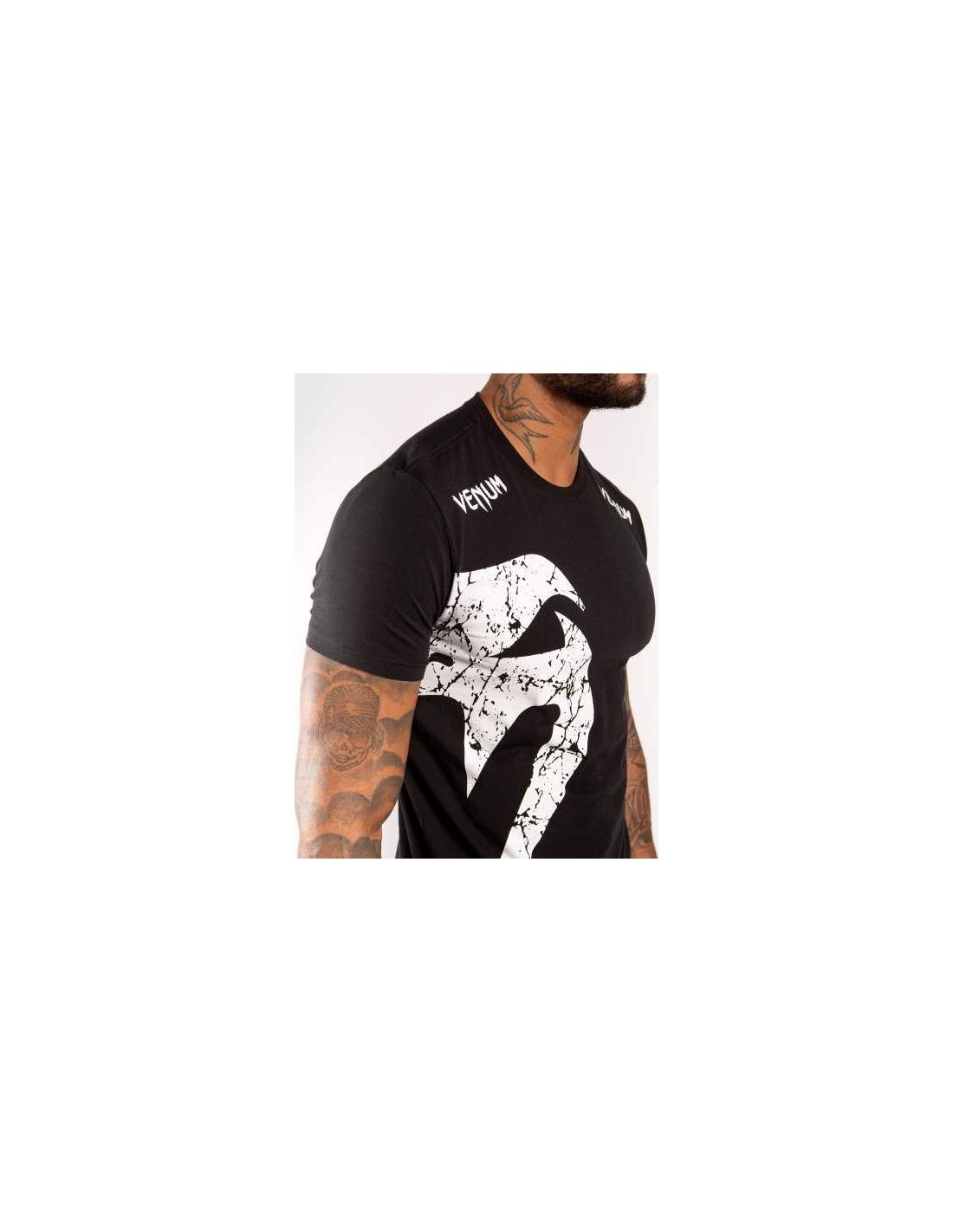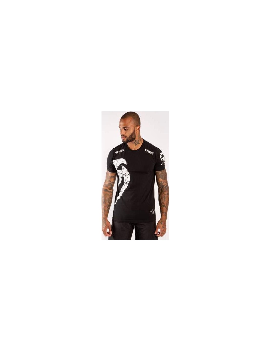 Venum's best classic t-shirt: The Giant. The design focuses on the snake logo. A strong and aggressive design. This model measures 184 cm, weighs 90 kg and wears a size M product. His chest measurement is 110 cm and his waist measurement is 83 cm. Technical features: 100% high quality cotton t-shirt. Athletic fit. Super soft, comfortable and durable fabric.