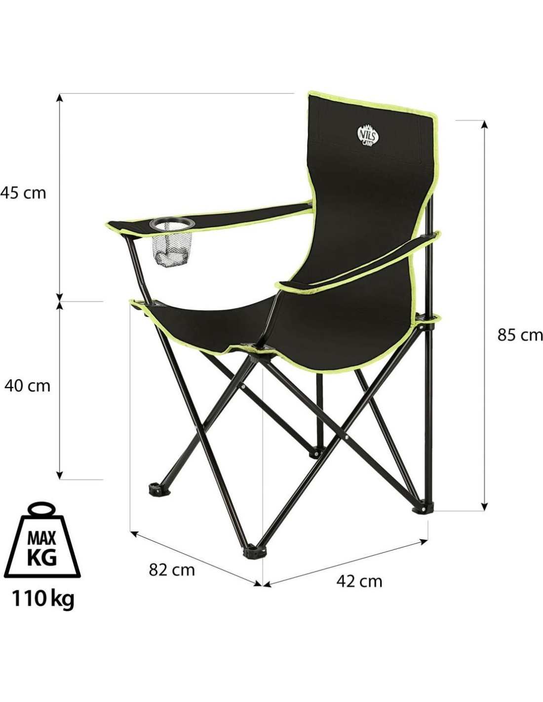A universal chair working well under any conditions and in any terrain. Its stability is ensured by solid steel profiles of a diameter 15 mm. Thanks to its solid structure and 600D Oxford material, which is very durable, the chair's load capacity equals 110 kg. The anti-slip legs prevent slipping of the chair.