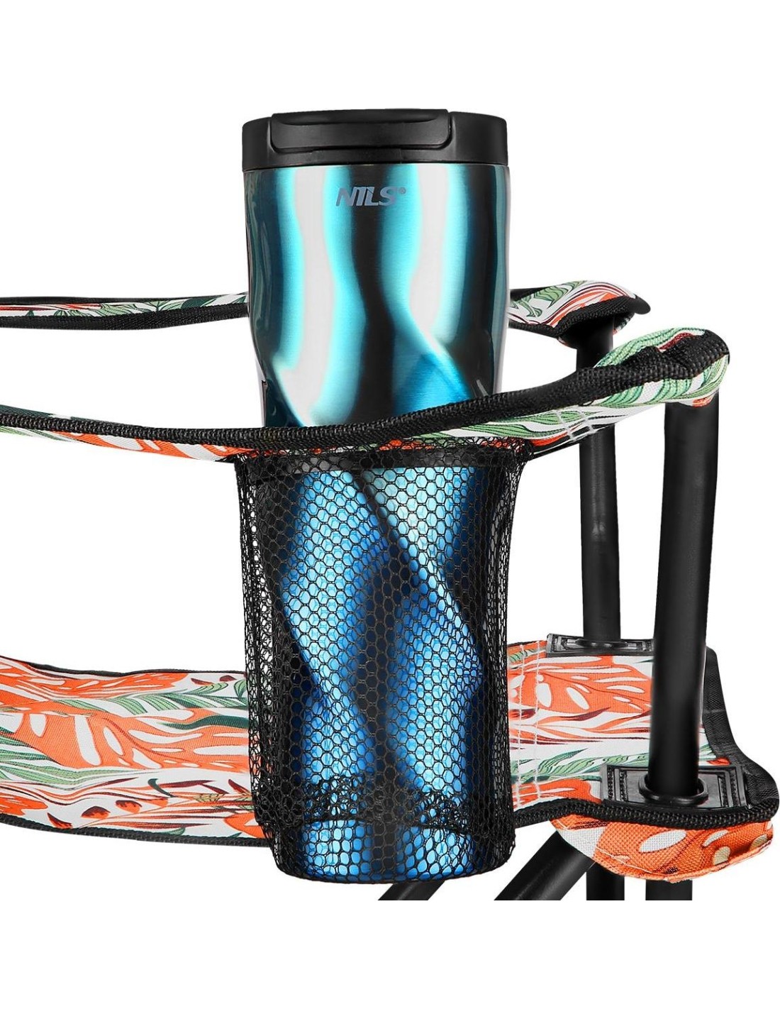 The 600D Polyester material used in the structure of the chair, apart from its strength is also characterized by comfort and weather-resistance. A cup holder is an advantage. Your favorite drink always at hand.