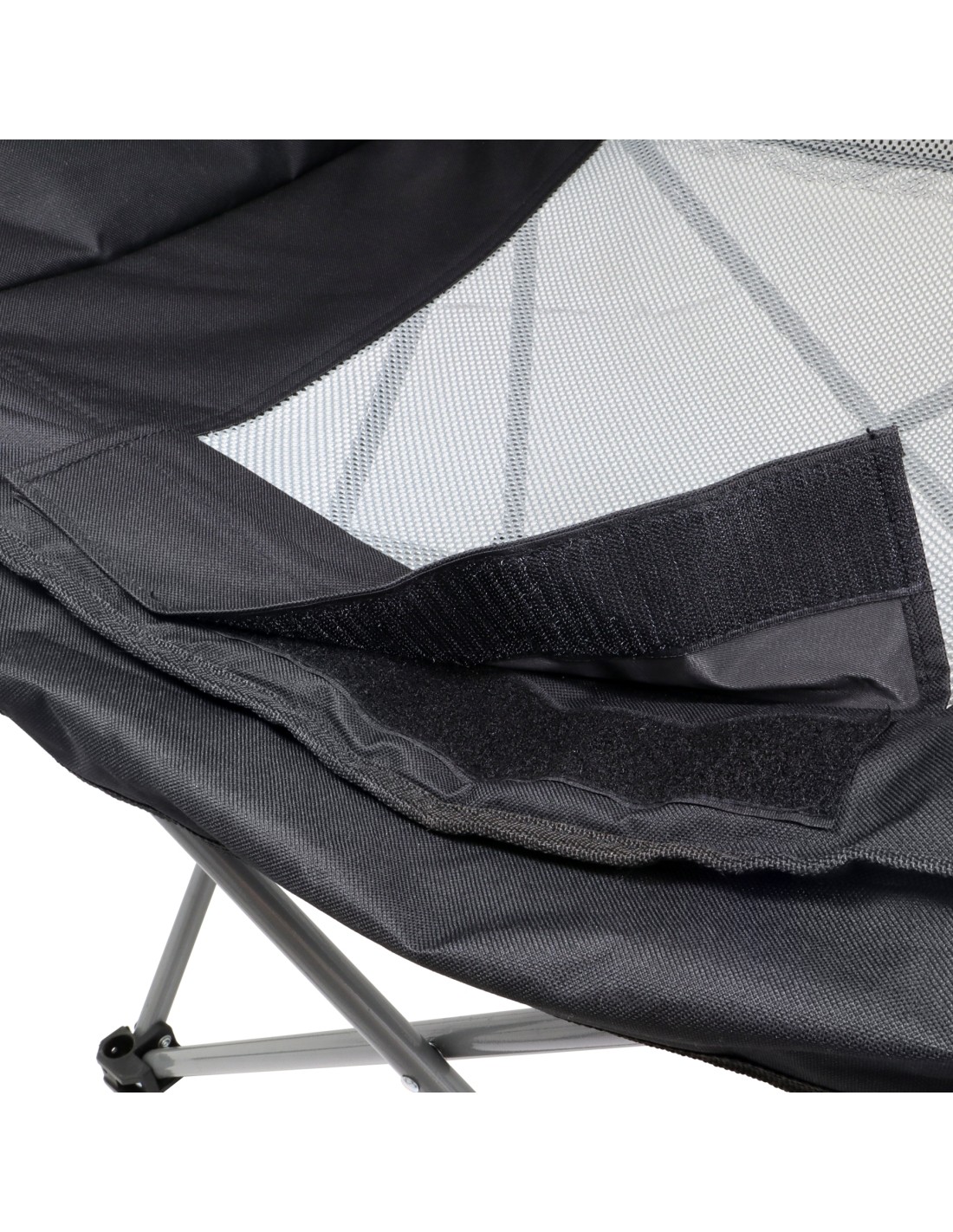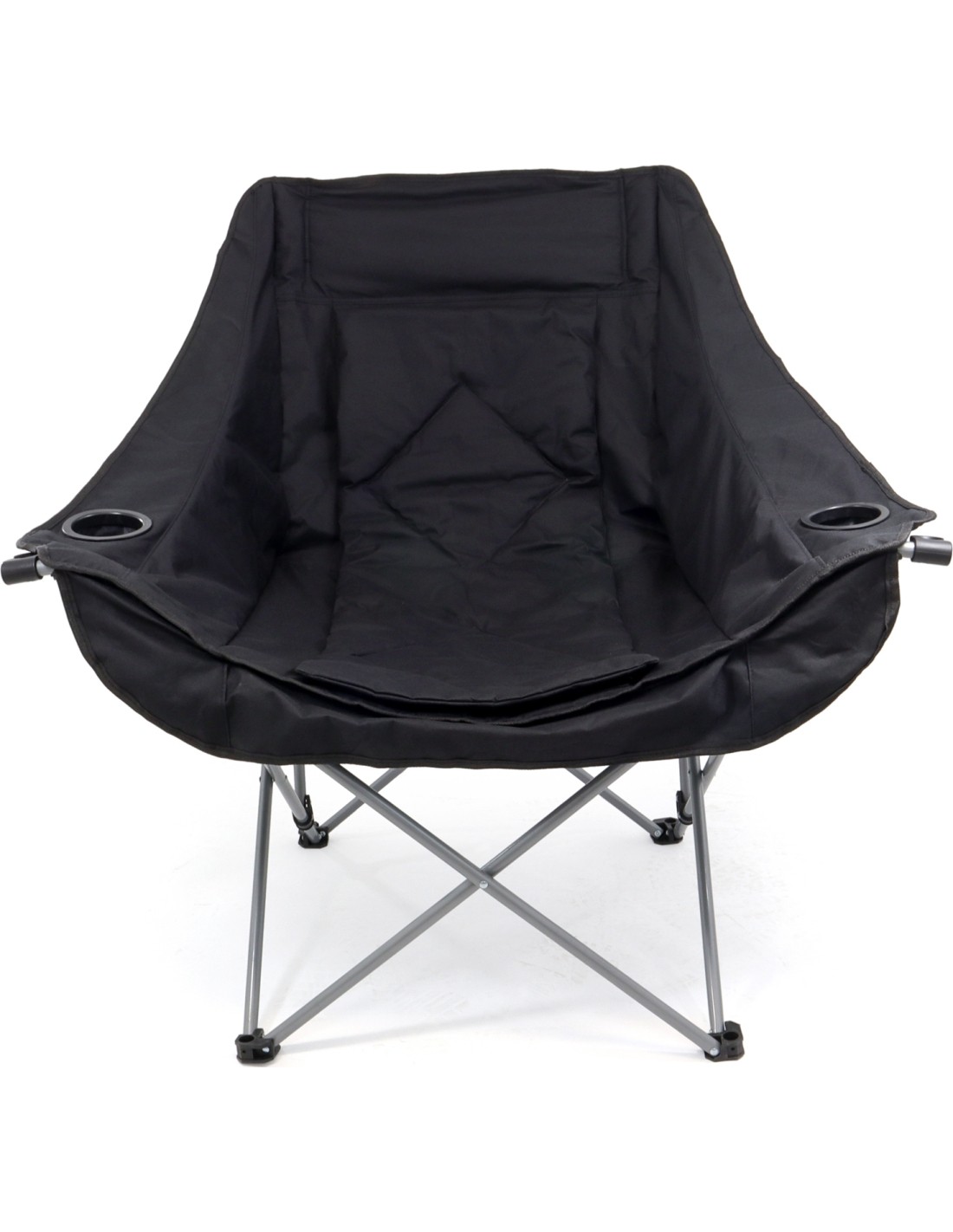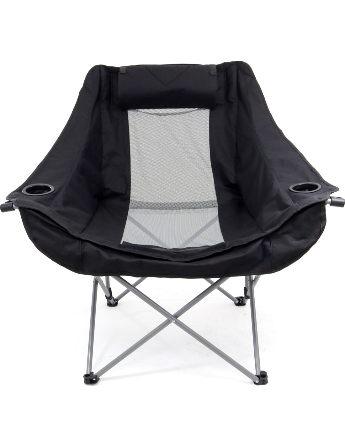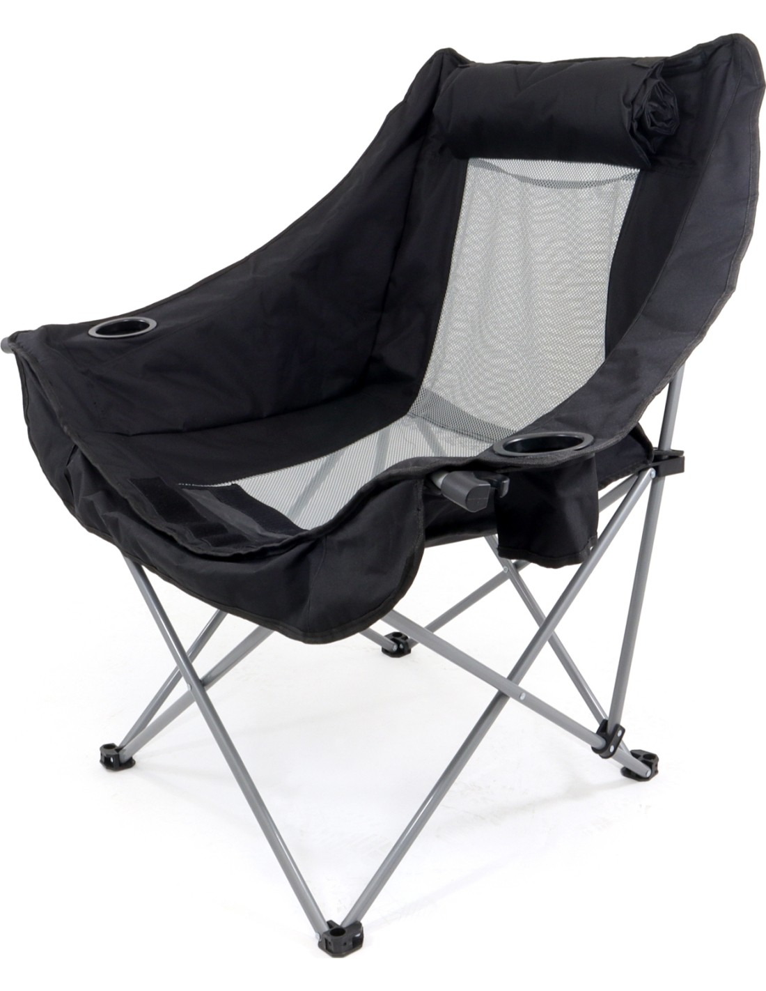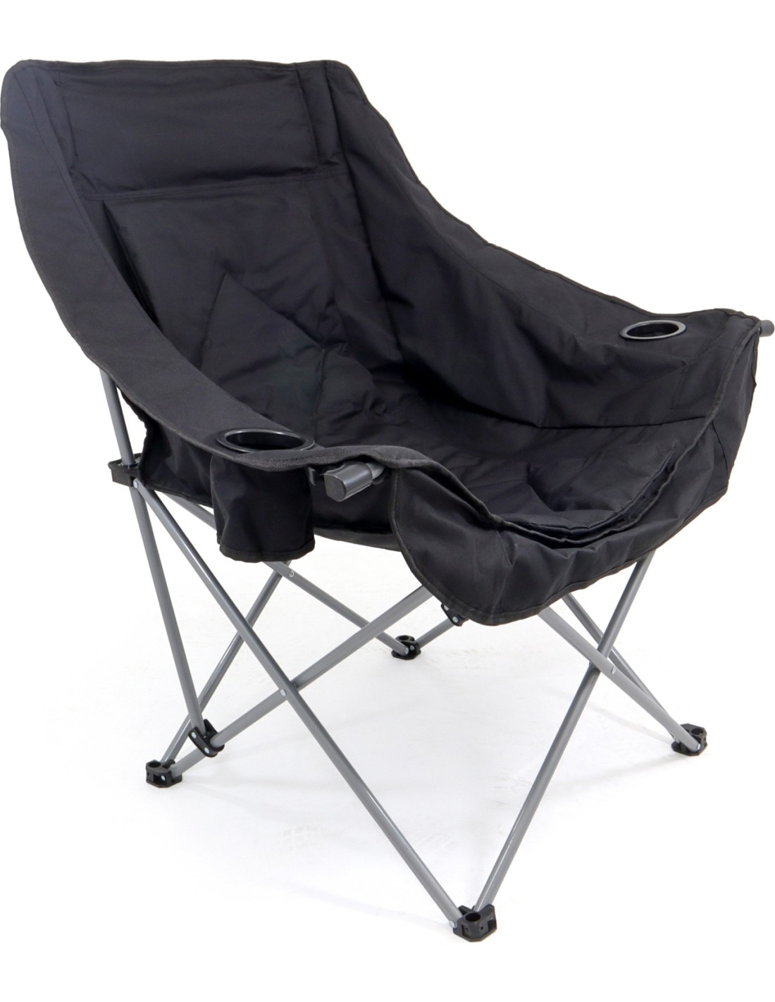 This sturdy folding chair offers a large and comfortable seat. The roll-up backrest ensures good ventilation and also serves as a headrest for maximum comfort. The padded seat and backrest ensure comfortable seating. Additional practical features such as a drink and wine glass holder and an organizer compartment make the chair particularly functional. The wide armrests also provide an extra dose of comfort.+ Roll-up backrest for good ventilation and headrest