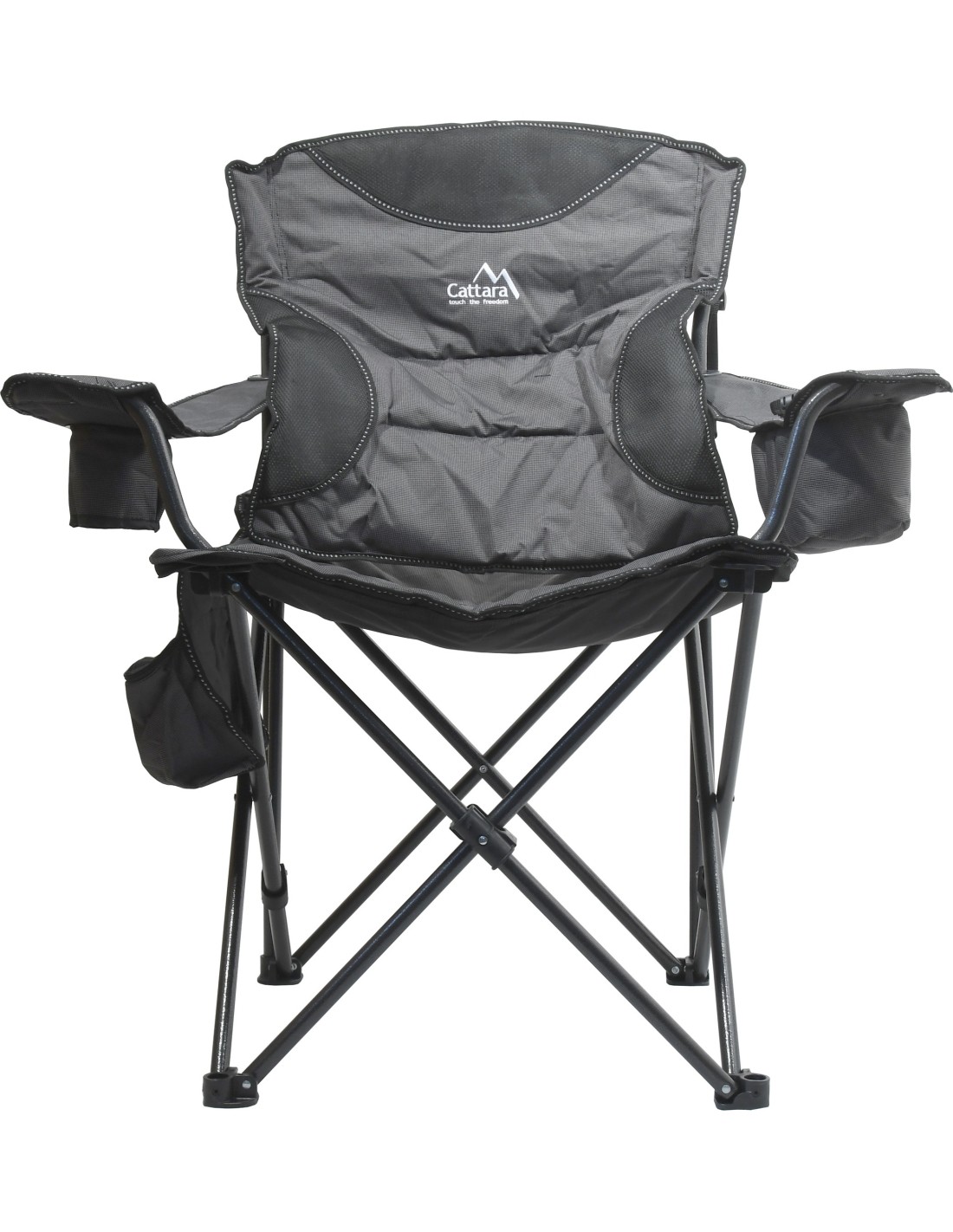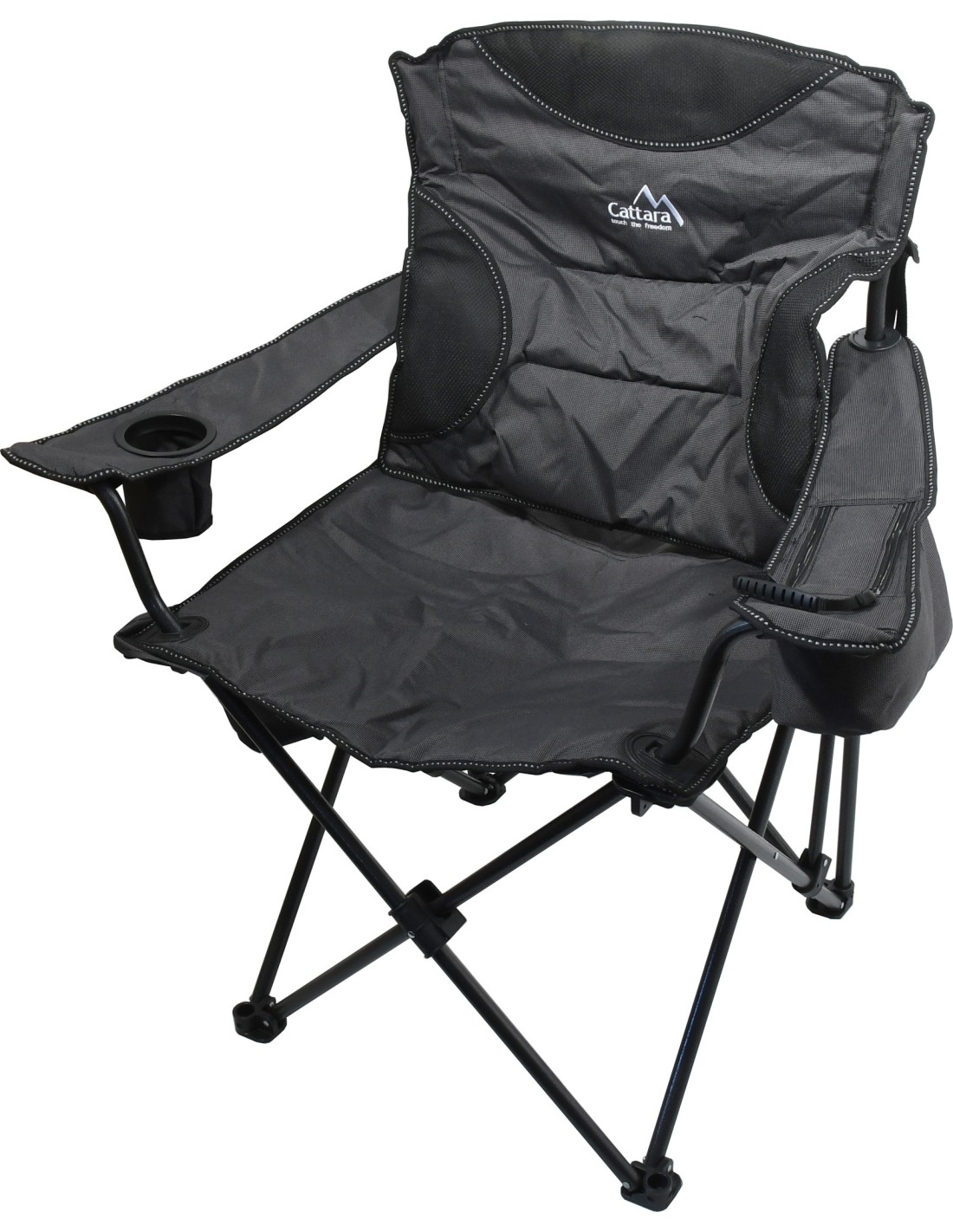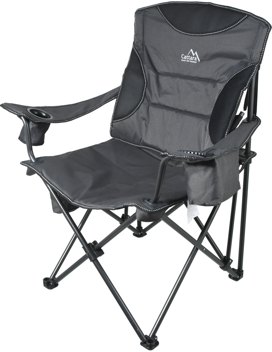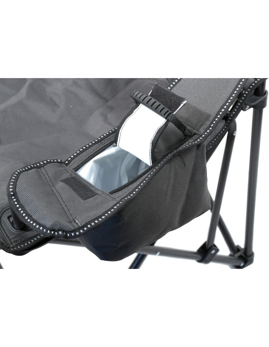 Krzesło jest wyposażone w dobrze uszyty pokrowiec i wyściełane uchwyty, dlatego doceni je każdy miłośnik spędzania czasu na świeżym powietrzu. Uchwyty uzupełnia uchwyt na napoje i praktyczna torba na drobiazgi.
