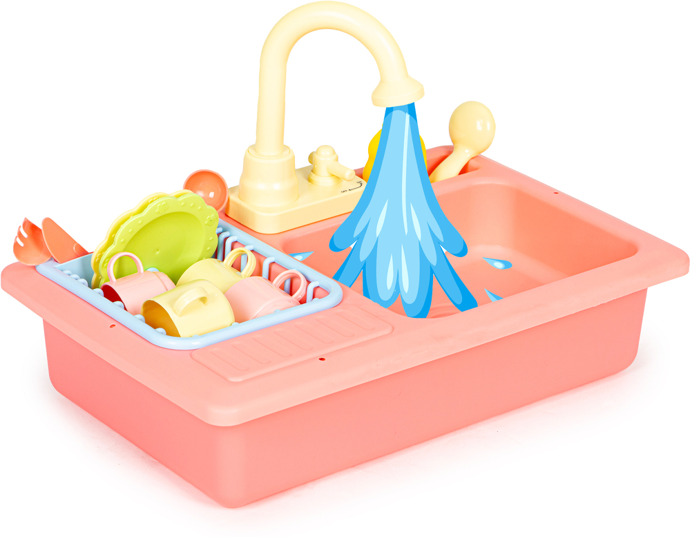 Łączenie zabawy z rozwojem ich zdolności, to najlepsza forma nauki dzięki, której zabawa staje się nie tylko wciągająca ale również korzystnie wpływa na zdolności manualne, rozwija wyobraźnię i uczy właściwych nawyków. Zadbaj o rozwój swojego dziecka i wybieraj zabawki, które wpłyną na wiedzę i rozwój Twojej pociechy. Przed Tobą jedna z takich zabawek - zlew z kranem, z którego leci woda. Dzięki tej zabawce dzieci mogą spróbować swoich sił podczas zmywania, będą ćwiczyć koordynację ręka-oko, poznają zasady zmywania, a przede wszystkim będą miały wielką frajdę z samej zabawy wodą.