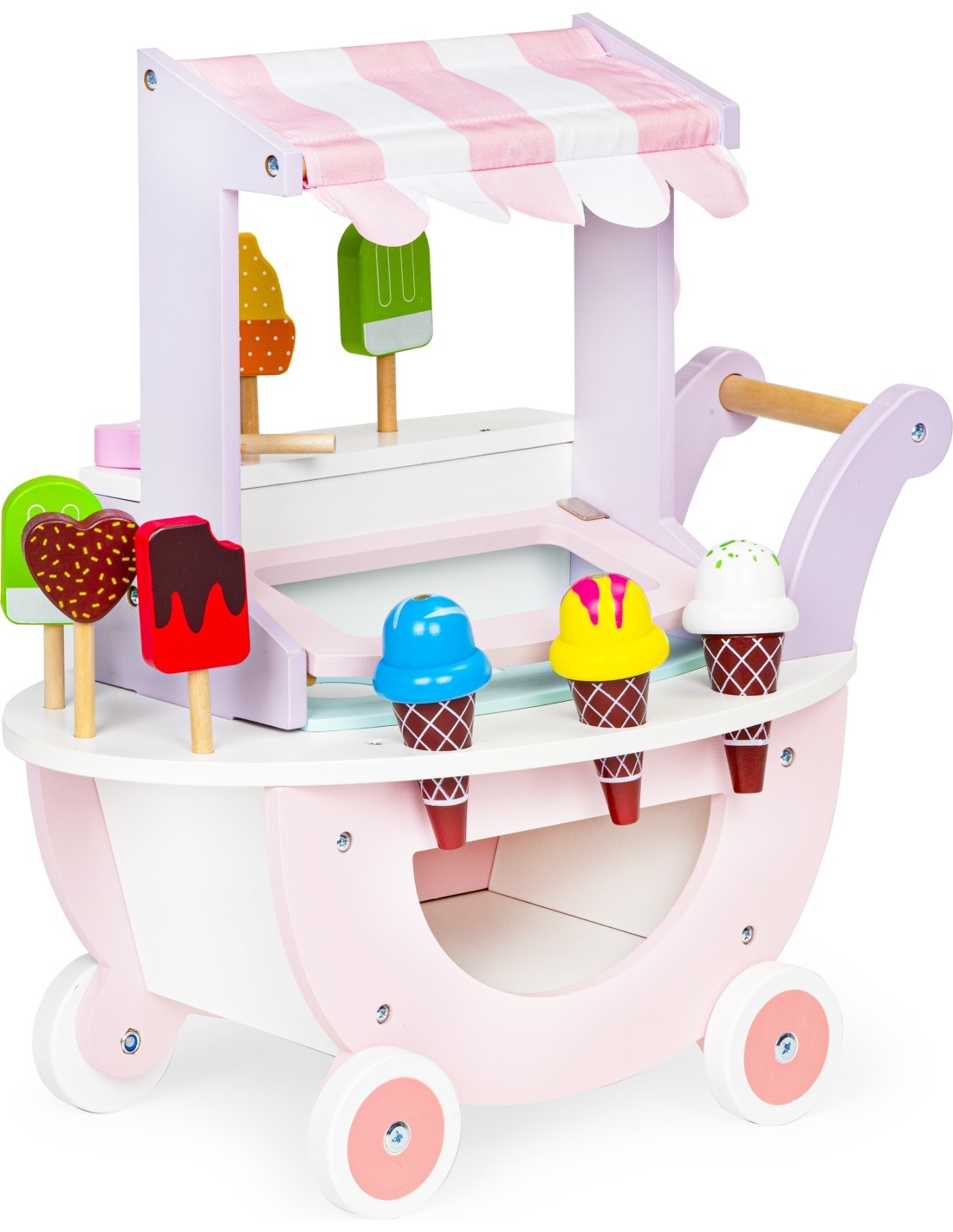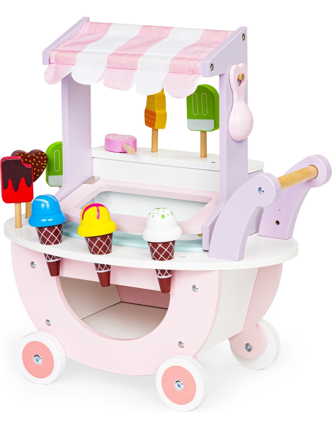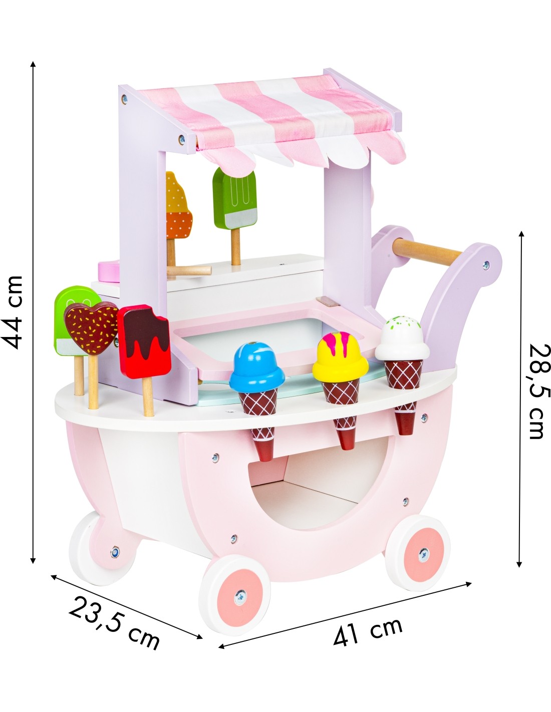 Dzieci uwielbiają obserwować i naśladować dorosłych, codzienne czynności są przez nie odgrywane w zabawie. Dzięki wózkowi mogą wcielić się w rolę sprzedawcy pysznych, kolorowych lodów. Poza dobrą zabawą dziecko rozwinie wyobraźnię, kreatywność i zdolności manualne, a wózek szybko stanie się ulubioną zabawką.
