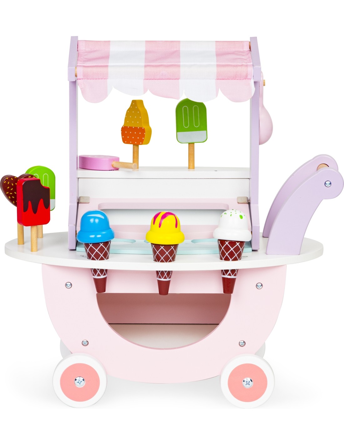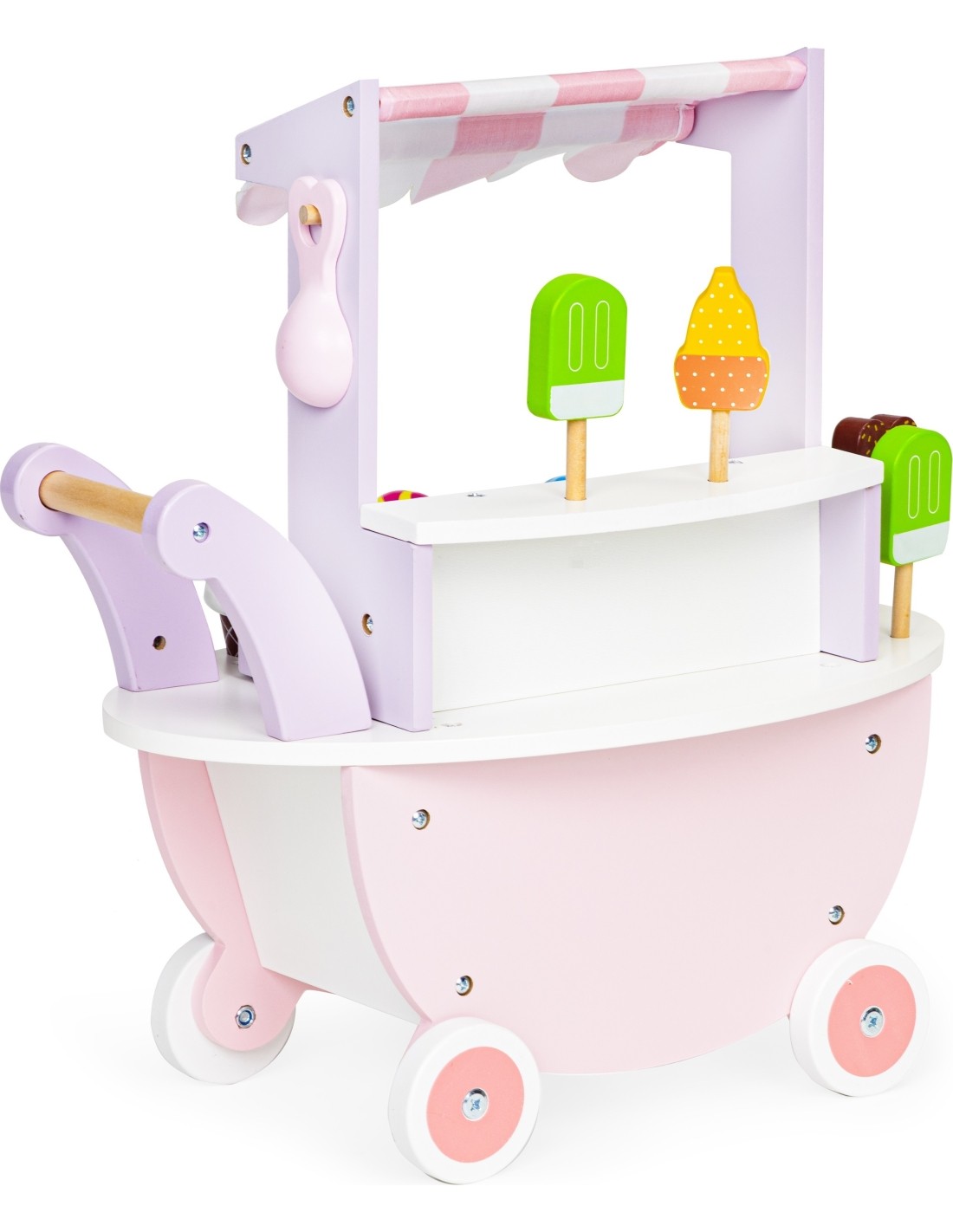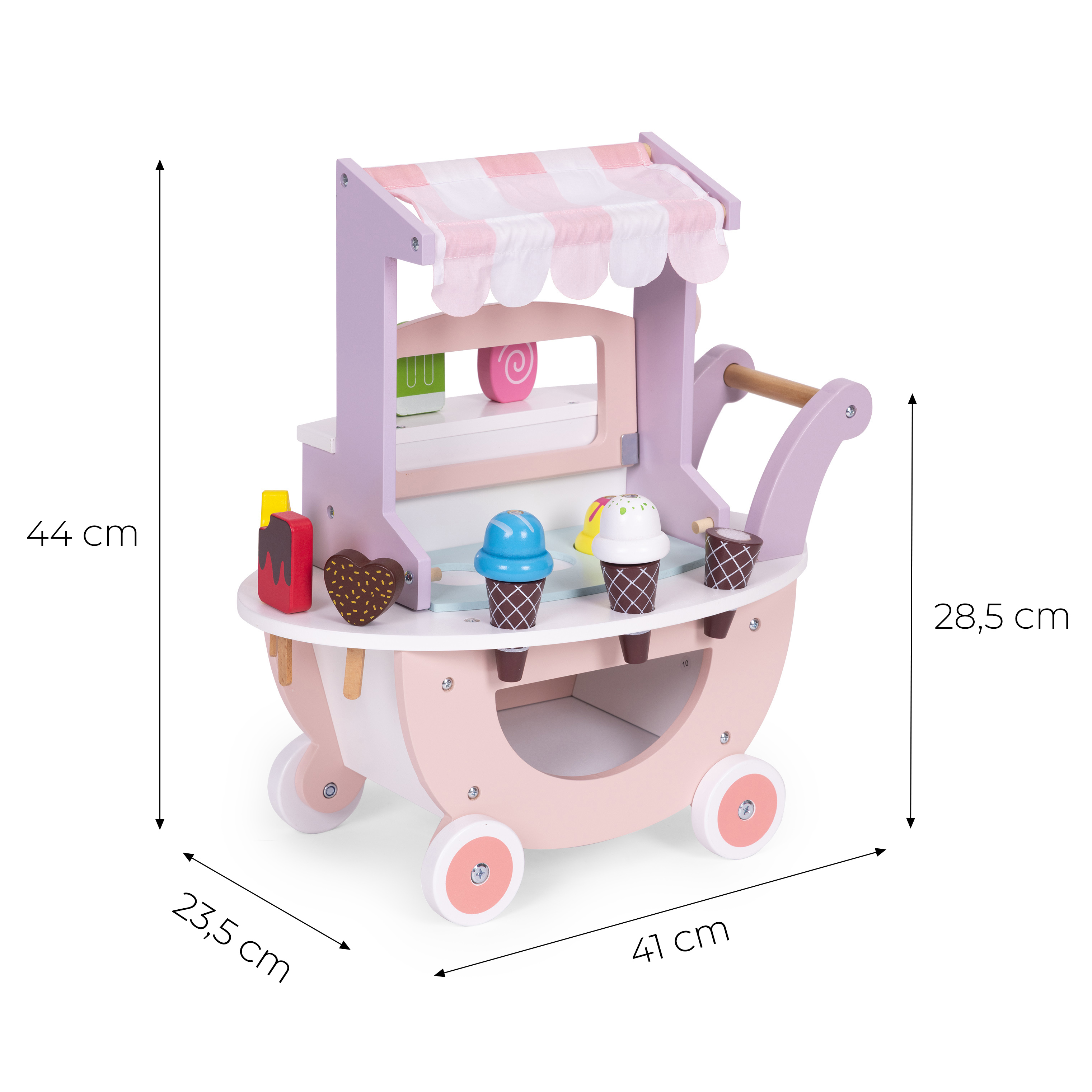 Dzieci uwielbiają obserwować i naśladować dorosłych, codzienne czynności są przez nie odgrywane w zabawie. Dzięki wózkowi mogą wcielić się w rolę sprzedawcy pysznych, kolorowych lodów. Poza dobrą zabawą dziecko rozwinie wyobraźnię, kreatywność i zdolności manualne, a wózek szybko stanie się ulubioną zabawką.