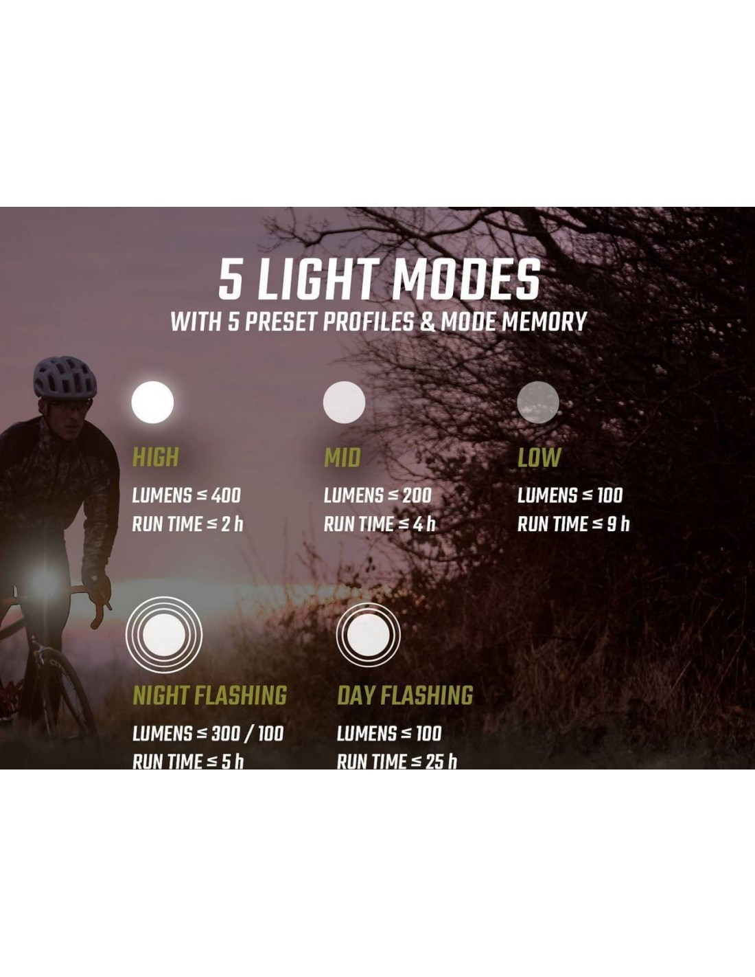 BUSTER RL 80 zapewnia światło ouput do 80 lumenów i dlatego jest więcej niż wystarczająco jasny na wycieczki w godzinach dziennych. Do wyboru jest pięć trybów świecenia: wysoki, niski, dzienny migający, nocny migający i Eco migający. Praktyczna funkcja, zwłaszcza w przypadku dłuższych wycieczek. Dzięki interfejsowi USB-C tylną lampkę można naładować w zaledwie dwie godziny. ~ 1500 m zasięg widoczności Pięć trybów: High (25 lm), Low (5 lm), Day flashing (80 lm), Night flashing (15 lm), Eco flashing (5 lm). Czas pracy: 2 h w trybie wysokim, 7 h w trybie niskim, 4,5 h w trybie dziennym, 6,5 h w trybie nocnym, 12 h w trybie Eco Funkcja pamięci trybów Krótkie naciśnięcie przycisku pokazuje stan baterii Czas ładowania: 2 h Montaż bez użycia narzędzi dzięki elastycznemu silikonowemu uchwytowi Zintegrowana funkcja ładowania przez USB-C Szerokokątny układ optyczny 240 stopni Trójstopniowy wskaźnik stanu baterii Odporność na zachlapanie zgodnie z normą IPX4 Waga: 29 g (wraz z uchwytem)