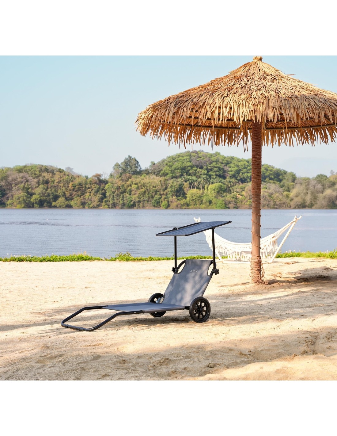 NILS CAMP 3307 – comfortable travel deck chair with canopy and wheels