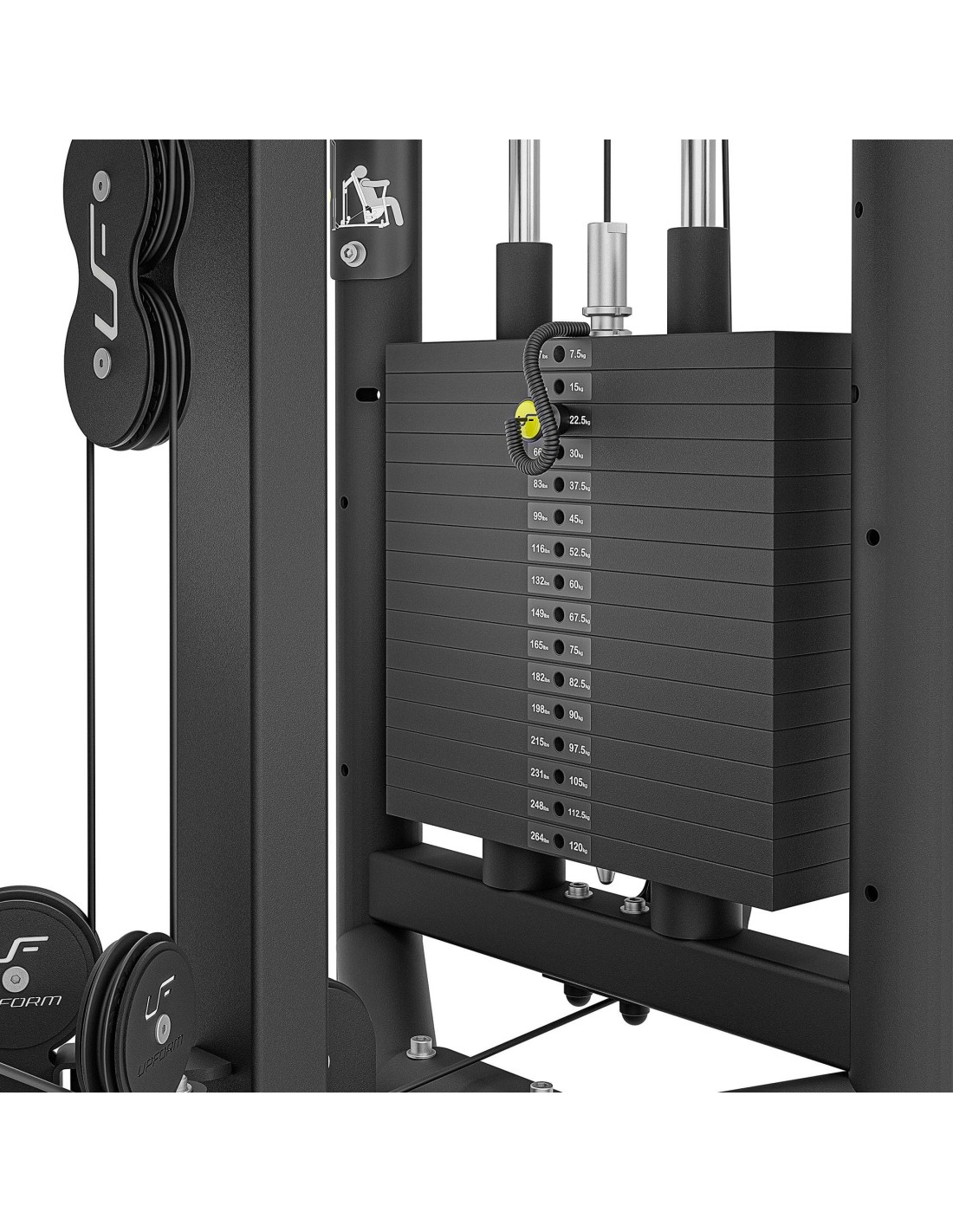 Stacja UF-020 została wyposażona w stos 120 kg. Stos składa się z 16 sztabek o wadze 7,5 kg każda. Wszystkie sztabki posiadają naklejkę informującą o łącznej wadze w kilogramach oraz funtach. Uchwyt przetyczki do regulacji stosu został wykonany z aluminium, sama przetyczka jest zabezpieczona linką spiralną.