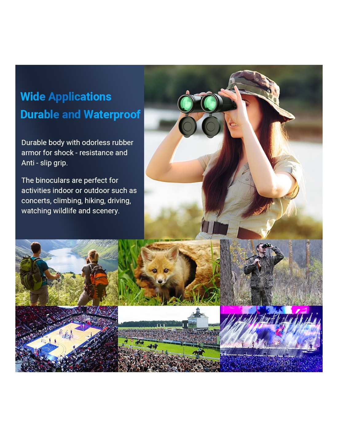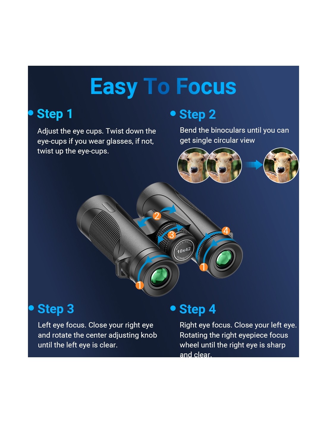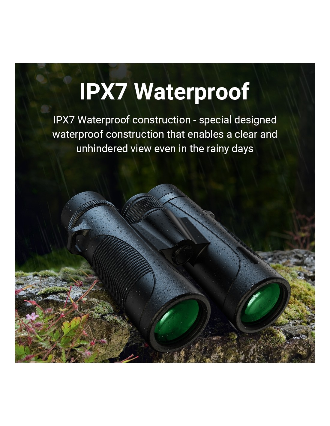 The waterproof IPX7-rated body and durable construction let you observe worry-free in rain, fog, or humid environments. The rubberized exterior protects the optics from impacts and provides a secure, stable grip. That means you can focus on the experience—not on handling your gear carefully.