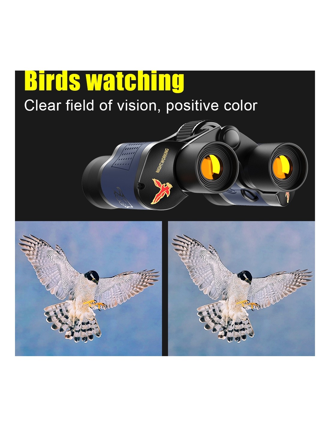 The 60x zoom allows you to observe very distant objects with surprising closeness. With the central focus wheel and diopter adjustment, you can easily focus on any target—from landscapes and birds to sporting events. The 5mm exit pupil ensures comfortable and stable viewing.