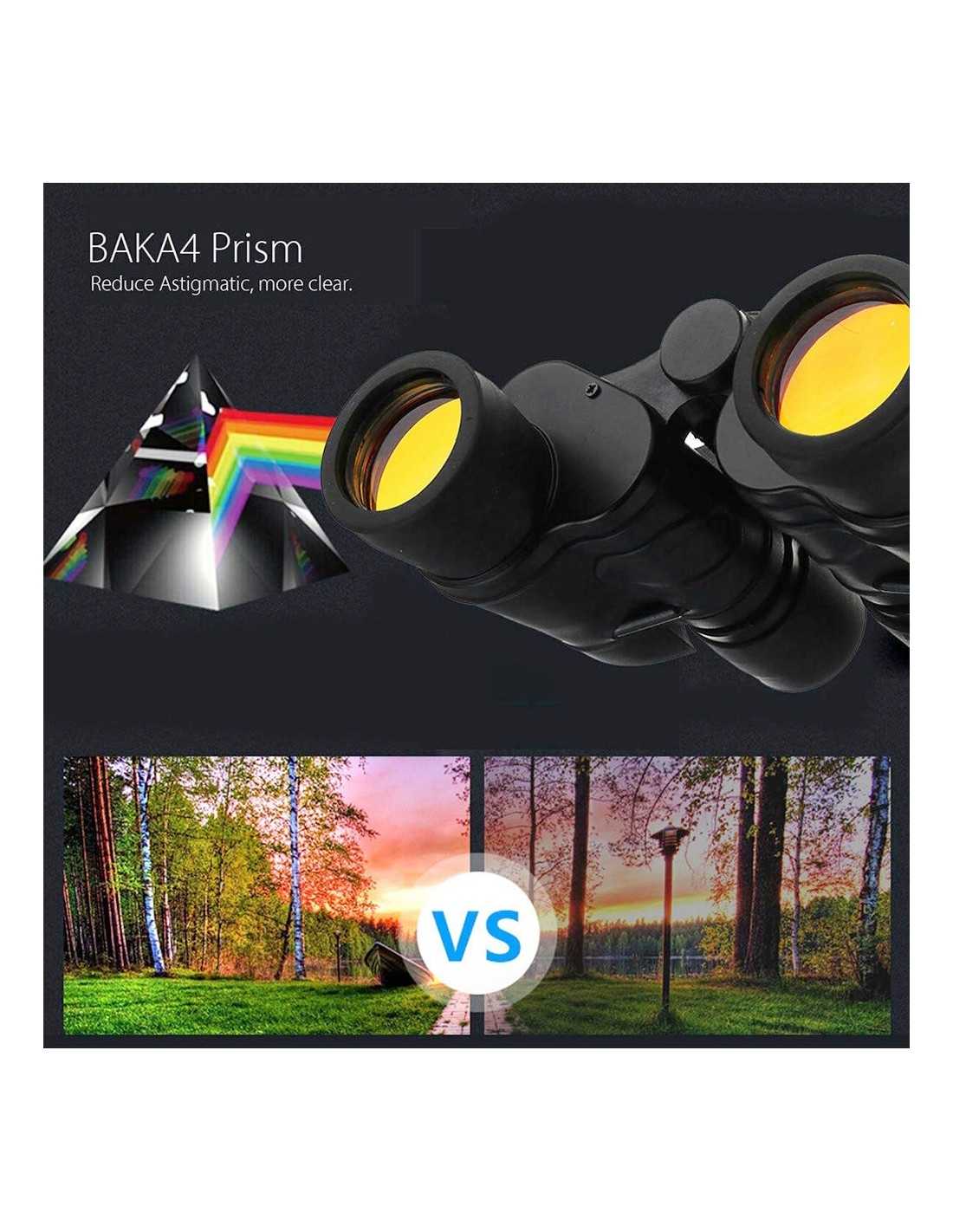 The Apexel model uses multi-layer aspherical lenses that maximize light transmission and enhance image contrast. A yellow reflective coating on the objective lens improves brightness in low-light situations, allowing you to see clearer details even at dusk. The BAK4 prisms ensure a sharp image without distracting glare.