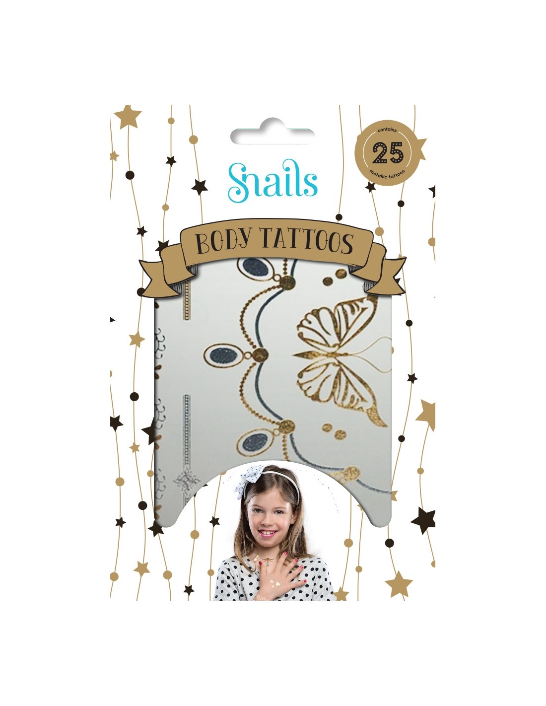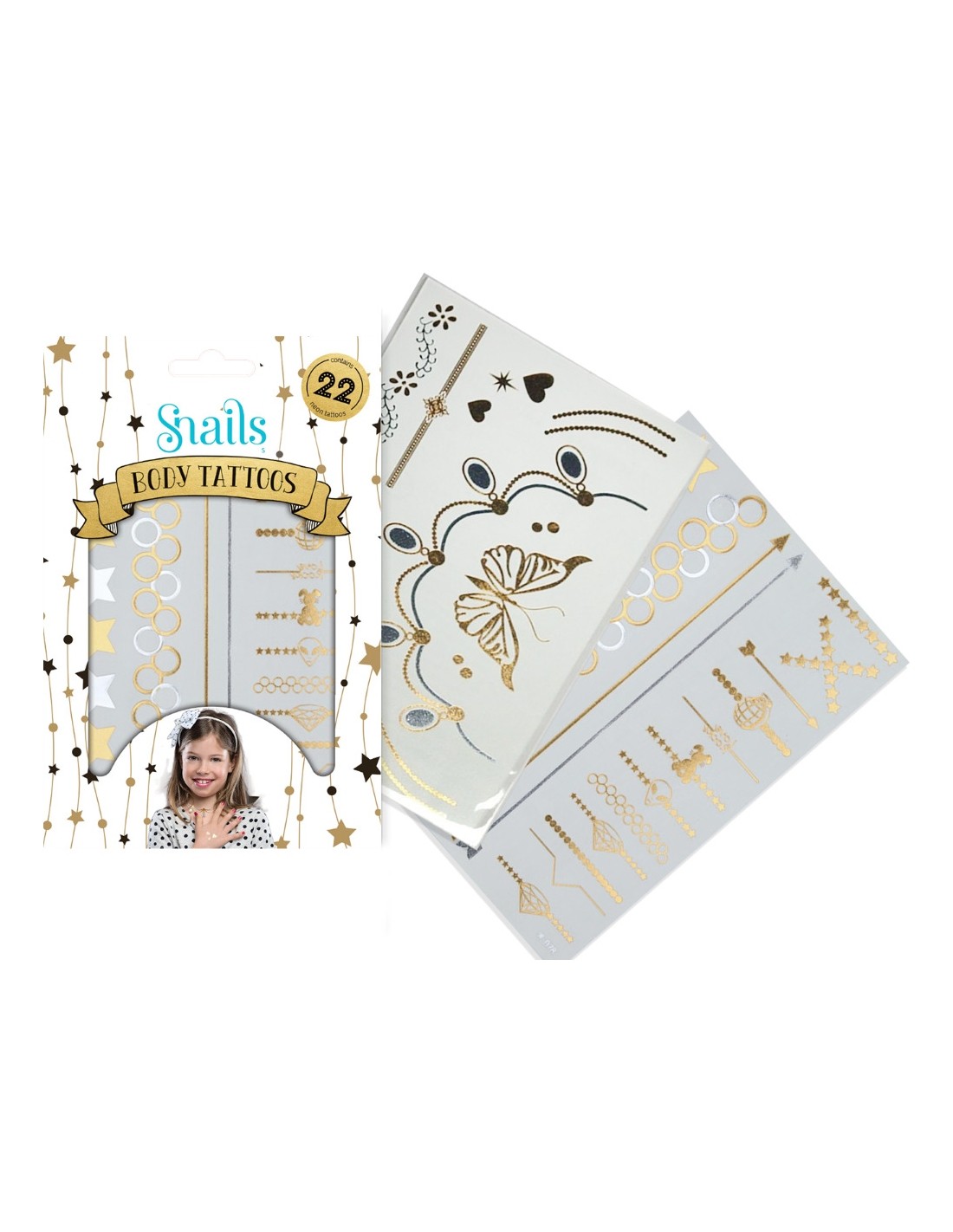 Snails - kūno tatuiruotės. Visos mergaitės mėgsta puoštis. Snails kūno tatuiruotės, tai saugus būdas dekoruoti savo kūną. Tatuiruotės atrodo taip tikroviškai, kad ne vienas patikės, jog esate su tikrais papuošalais.Spalva: metalika (sidabrinė, auksinė)
