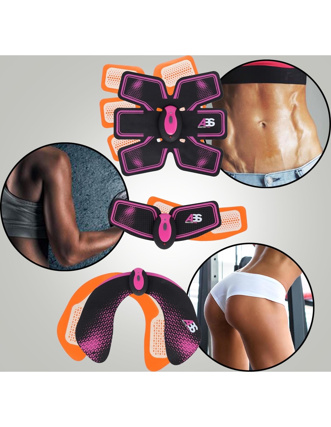 ABS Master Pro Multi Set to Twój osobisty sposób na zbudowanie perfekcyjnej sylwetki. To rewolucja w kształtowaniu mięśni. Jego głównym przeznaczeniem jest budowanie i wzmacnianie mięśni brzucha, jednak dzięki dodatkowym małym panelom oraz panelowi przeznaczonemu do treningu pośladków, sprawdzi się w treningu całego ciała. Jest idealnym uzupełnieniem klasycznego treningu. Ułatwi wzrost siły i wytrzymałości mięśni. Fale elektryczne EMS, które ABS Master Pro przepuszcza przez nasze ciało powodują kurczenie i rozkurczanie się mięśni. Impuls ten pochodzi z elektrody umieszczonej w nakładce, która jest zakładana podczas treningu. Wysyłane impulsy docierają do najgłębiej usytuowanych włókien mięśniowych, co zwiększa poprawę ich kondycji i gwarantuje efekty znacznie szybciej niż klasyczny trening. Urządzenie posiada 6 trybów pracy i 20 poziomów intensywności. Dzięki temu idealnie dopasujemy trening do naszych potrzeb i stopnia zaawansowania.