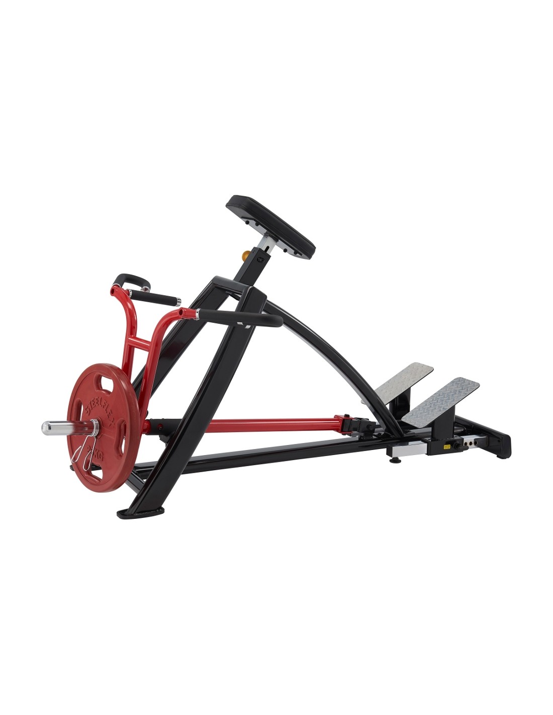 The Standing Pull Down/Rowing Machine Steelflex Plateload Line PLSR is a high-quality workout machine for strengthening the back, shoulders and arms. The Olympic weight plate posts allow you to adjust the resistance to your liking. The unilateral arm action allows for balanced muscle development while the two pairs of handles add variety to your workout. The sturdy, stable structure is coated with electrostatic powder paint which protects it from scratches. The Steelflex PlateLoad Line PLSR features a heavily-padded backrest, foam-padded handles and anti-slip legs for better stability during the workout. This exercise machine also features screw covers and fully-sealed, high-quality bearings. The Standing Pull Down/Rowing Machine Steelflex Plateload Line PLSR is suitable for both commercial and non-commercial use.