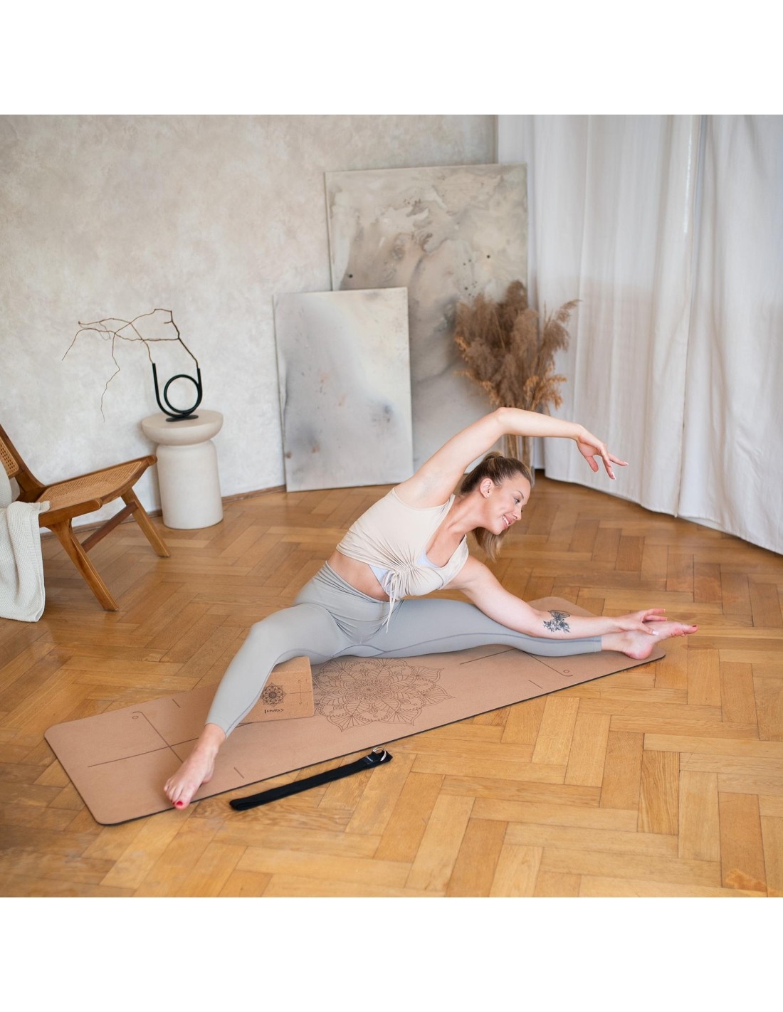 The KJ02 yoga cube made of cork is an exceptional choice for those who value stability and durability during their practice. Heavier than standard EVA blocks, it offers extra support during challenging postures, allowing for deeper stretching and better body stabilisation. The cork material has a high density and resistance to deformation, ensuring a long life for the ankle. Its natural look and mandala pattern add to its aesthetics and emphasise the eco-friendly nature of the set. It is the perfect support for any yogi, regardless of level.