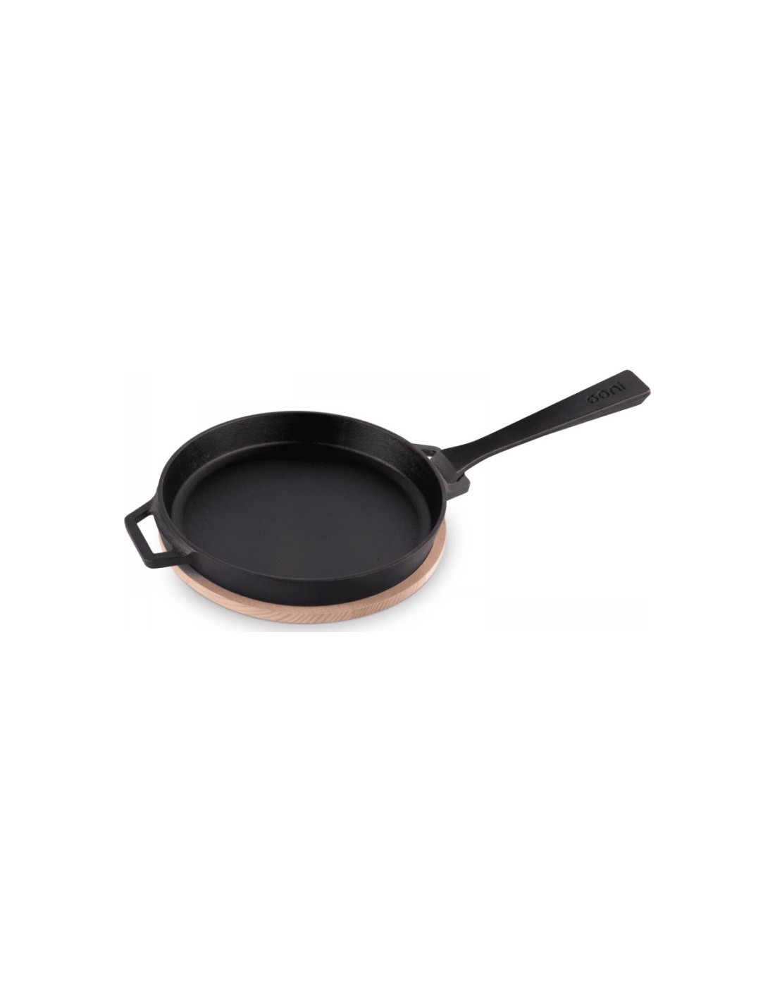 Ši keptuvė yra aukščiausios kokybės ketaus keptuvė, kuri puikiai tinka mėsos, jūros gėrybių, daržovių ir kitų kepinių kepimui „Ooni“ krosnyje. Keptuvė turi nuimamą ketaus rankeną, kurios dėka lengvai įdėsite ir išimsite keptuvę. Taip pat į komplektą įeina patvari medinė lenta, ant kurios galite padėti įkaitusią keptuvę. Keptuvė yra universali, todėl tinka naudoti ne tik krosnyje, bet ir virš laužo, orkaitėje grilyje ar ant viryklės.Specifikacijos:Išmatavimai: 42 x 25 x 4 cm Keptuvės svoris: 2,9 kgMedžiagos: Ketus, 100% buko lenta.