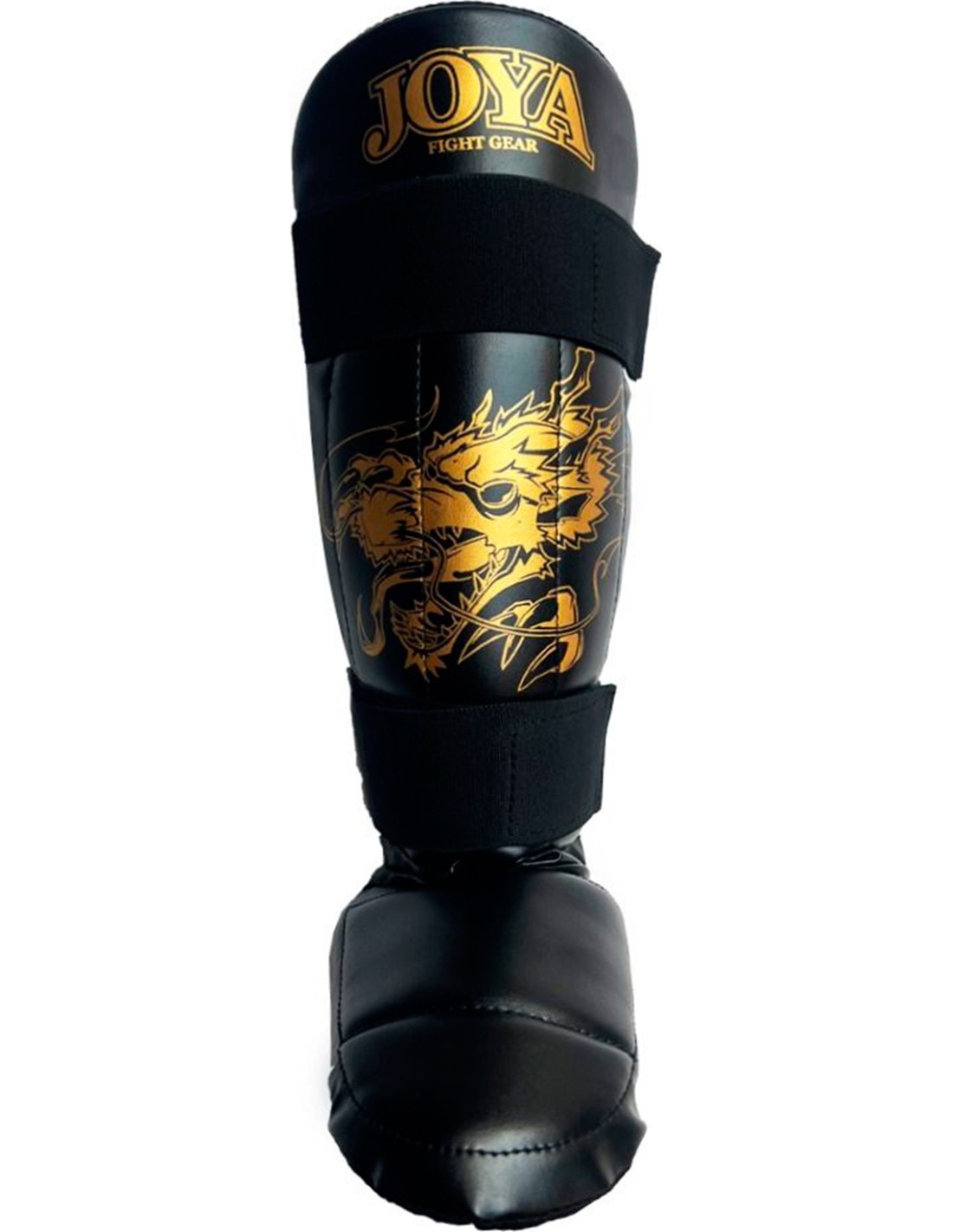 Omdat jouw kleine kampioen er goed uit moet zien met de beste uitrusting, heeft Joya de Dragon lijn gecreëerd! De Joya Dragon scheenbeschermers zijn speciaal ontworpen voor jonge kickboksers en bieden optimale schokabsorptie. Deze scheenbeschermers zijn gemaakt van hoogwaardig zwart PU leer met daarop een gouden draak en het Joya Fight Gear logo. De Joya Dragon scheenbeschermers zijn uitgerust met twee stevige klittenbandsluitingen en een elastiek onder de voet en hiel. Dit zorgt voor een nauwkeurige pasvorm en optimaal draagcomfort, zodat je kind zich volledig kan concentreren op de training.