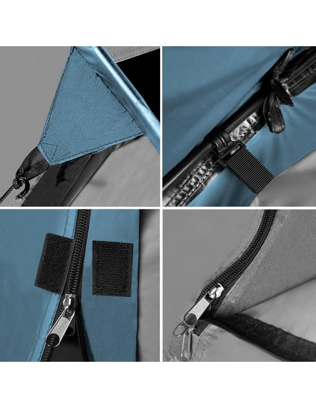 The tent is equipped with two internal pockets to store handy things and a holder under the ceiling in order to hang a lamp.