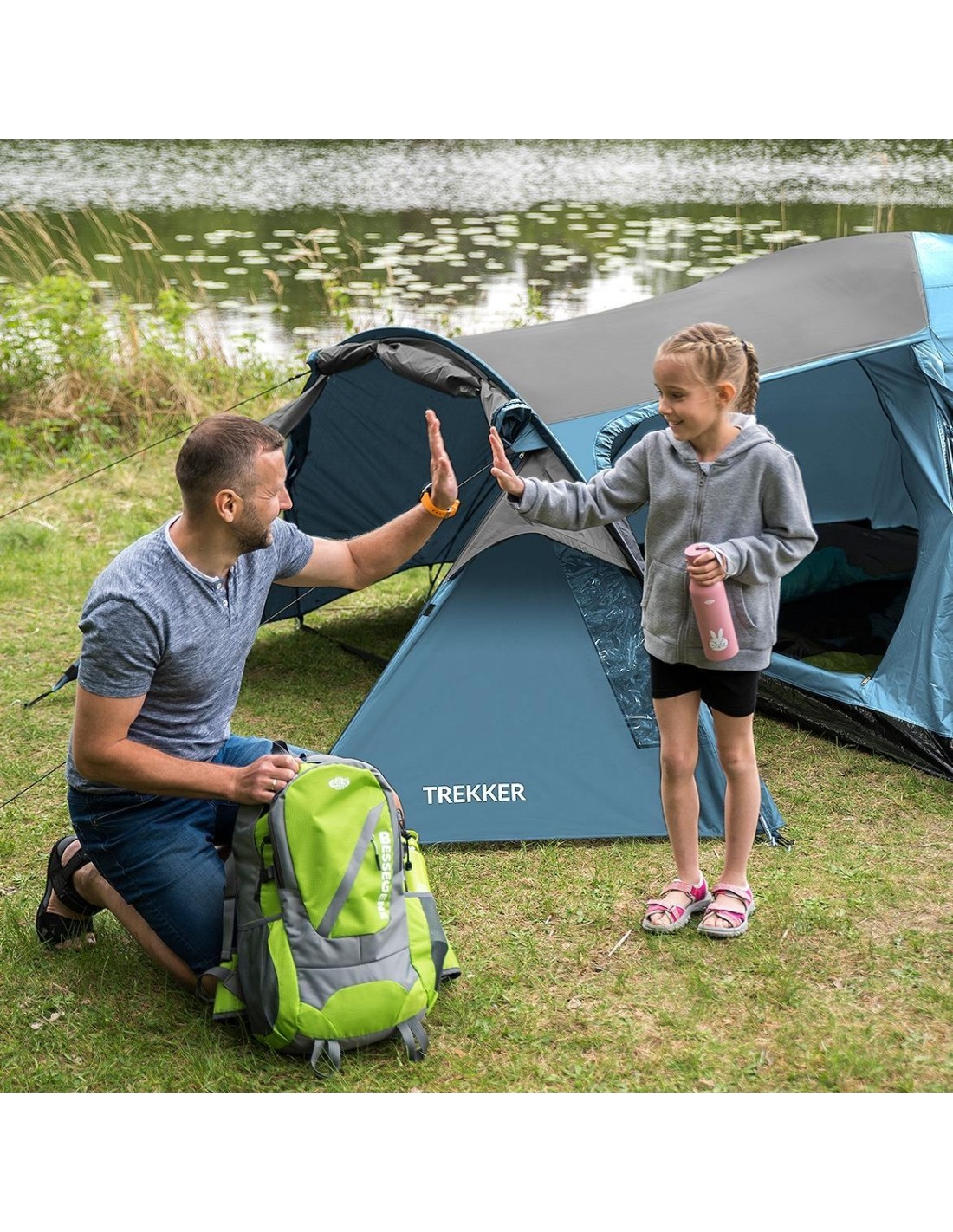 Trekker tent, apart from a suspended four-person bedroom offers also a large vestibule with dimensions of 130cm long x 240cm wide x 130cm high, thanks to which being inside one can freely spend evenings or rainy days and store camping equipment or backpacks and boots for the night. As an added bonus, there are two main entrances to the vestibule and two fixed windows providing more comfort during use.