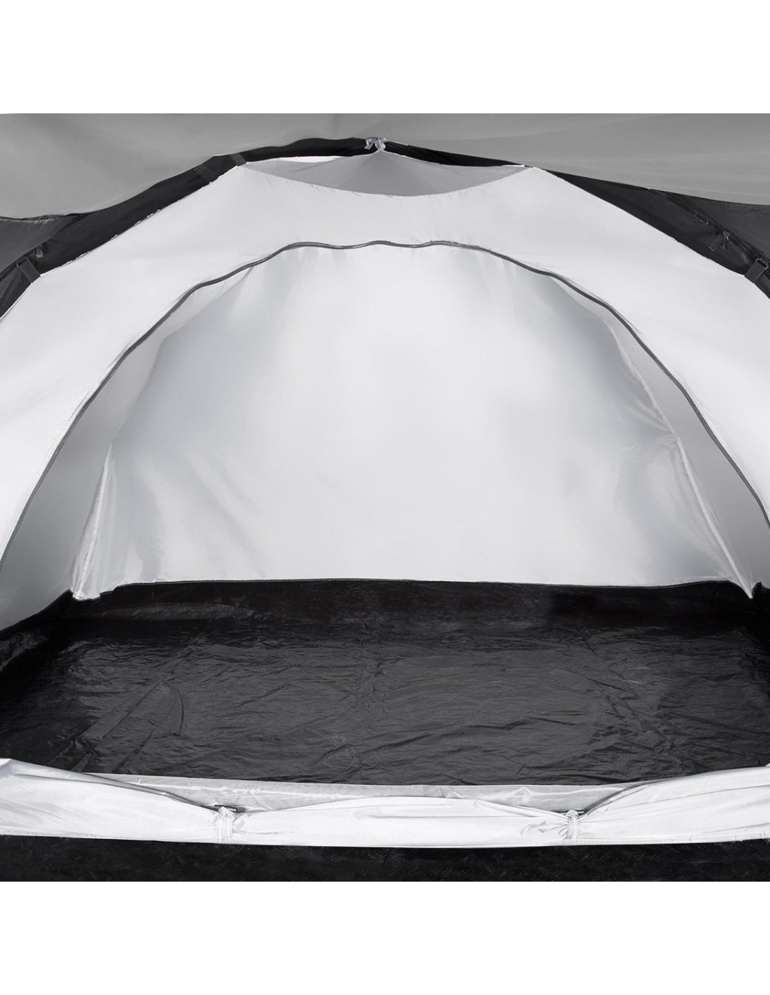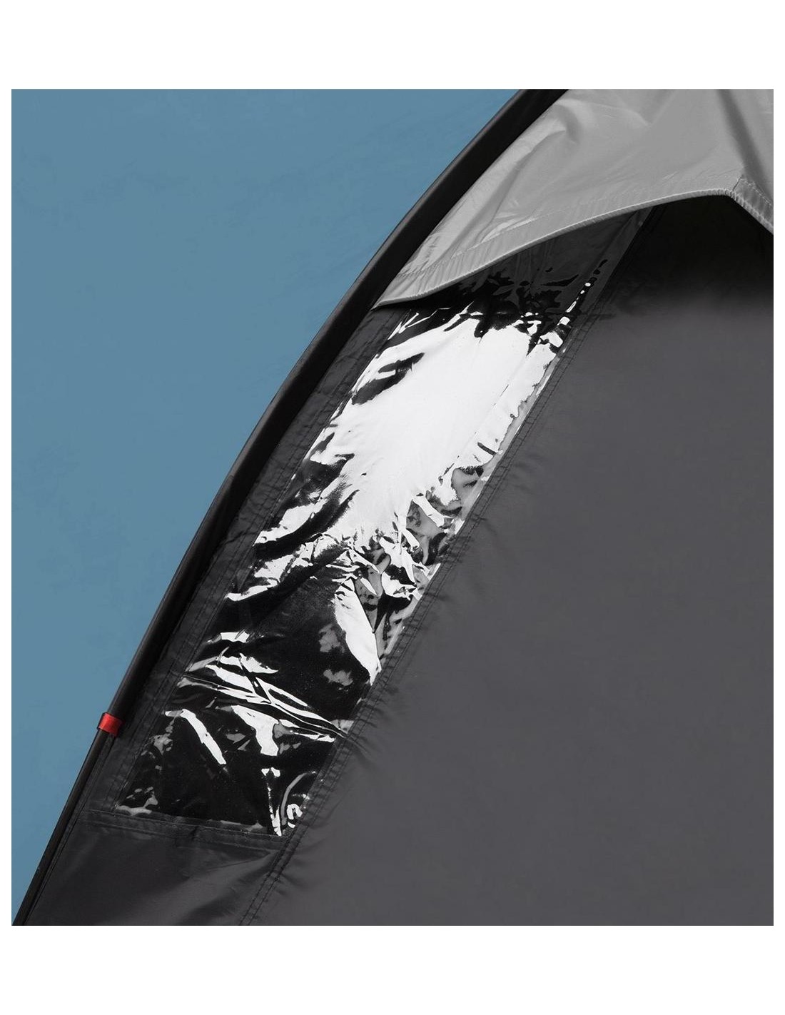 The tent is based on three fiberglass frames integrated with the flysheet. Tunnels and frames are marked with the same color so it is easy to match the right frame to the tunnel. Thanks to special holders inside the flysheet a bedroom can be suspended inside the tent. The entire tent is secured by pegs, together with the cords that fasten the flysheet.