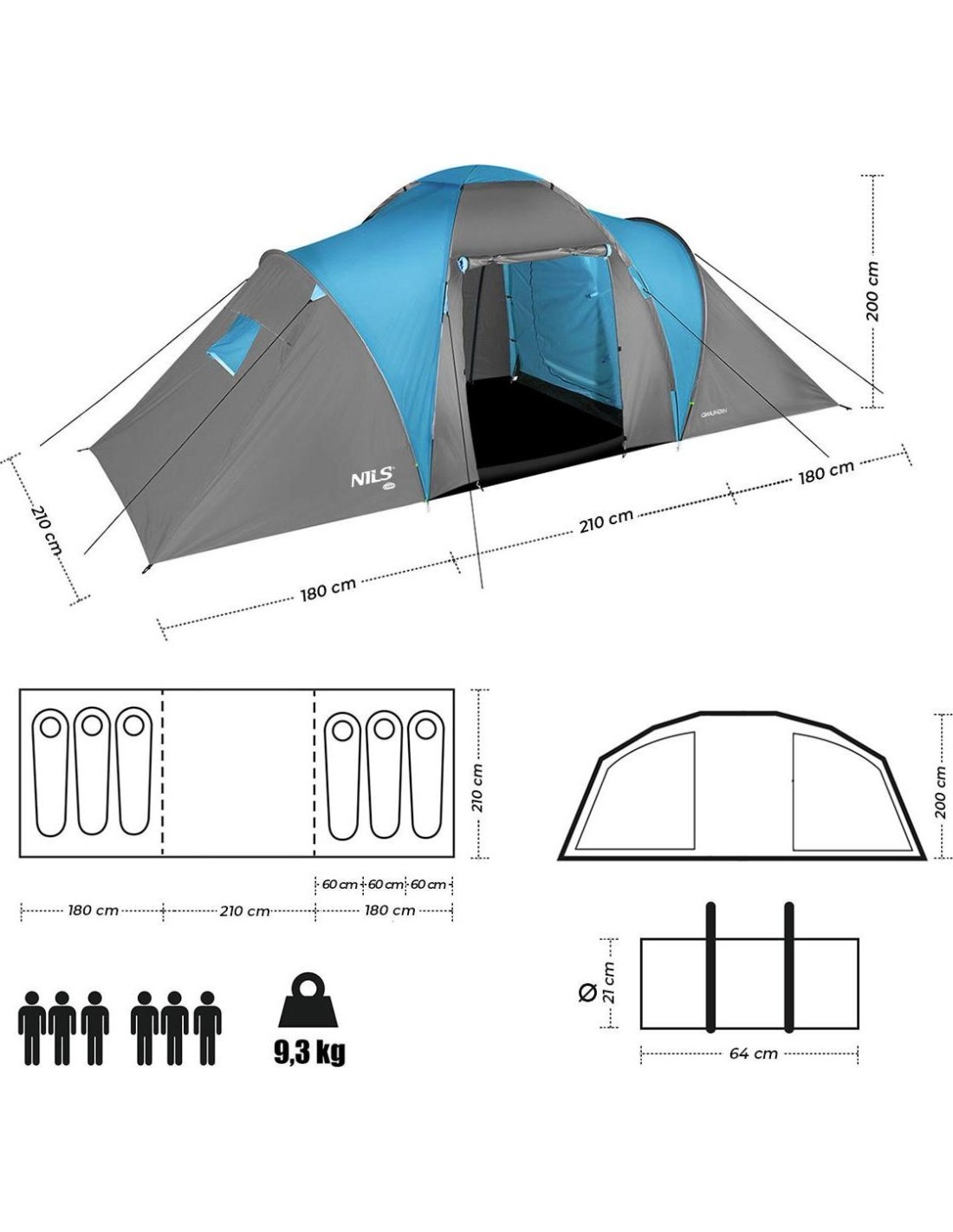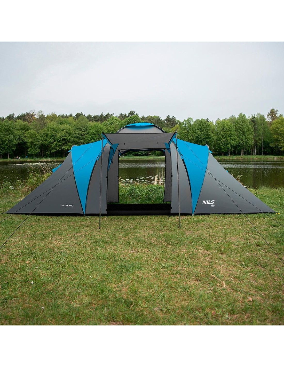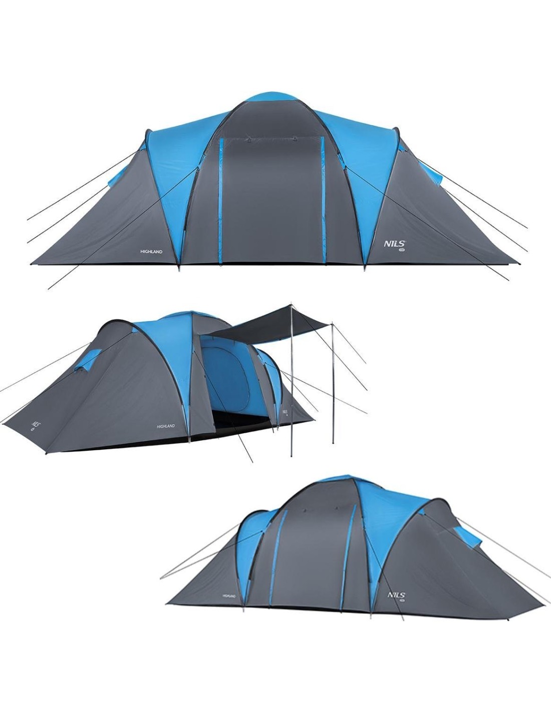 The Nils Camp NC6031 Highland hiking tent is the ultimate solution for weekend lake trips and long holiday camping. Highland is a double skin tent that has two separate, three-person bedrooms and a large vestibule with a floor for rainy evenings or storing camping gear. The tent can accommodate up to 6 people, which makes it extremely spacious and comfortable.