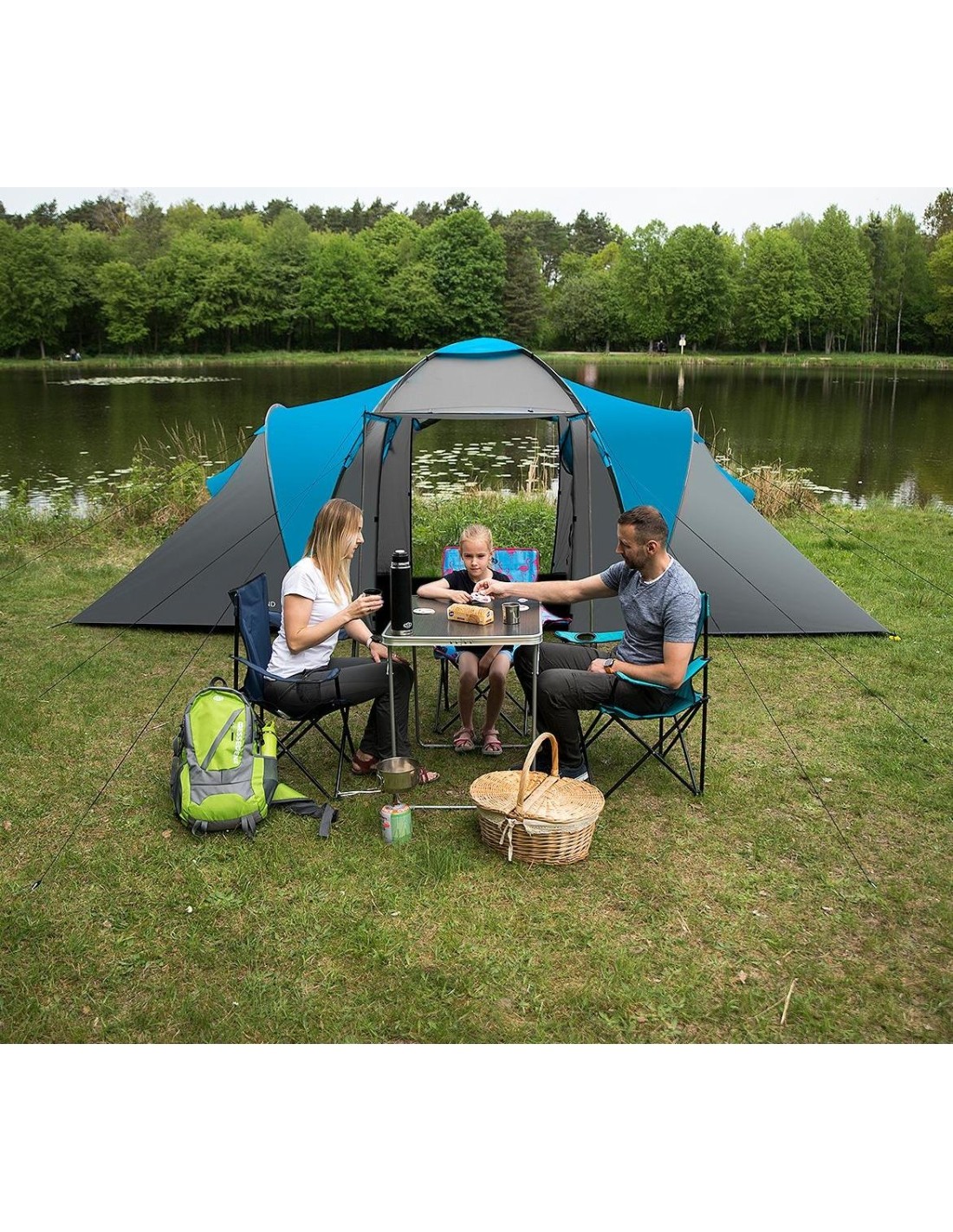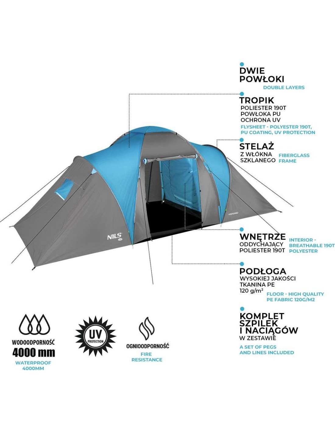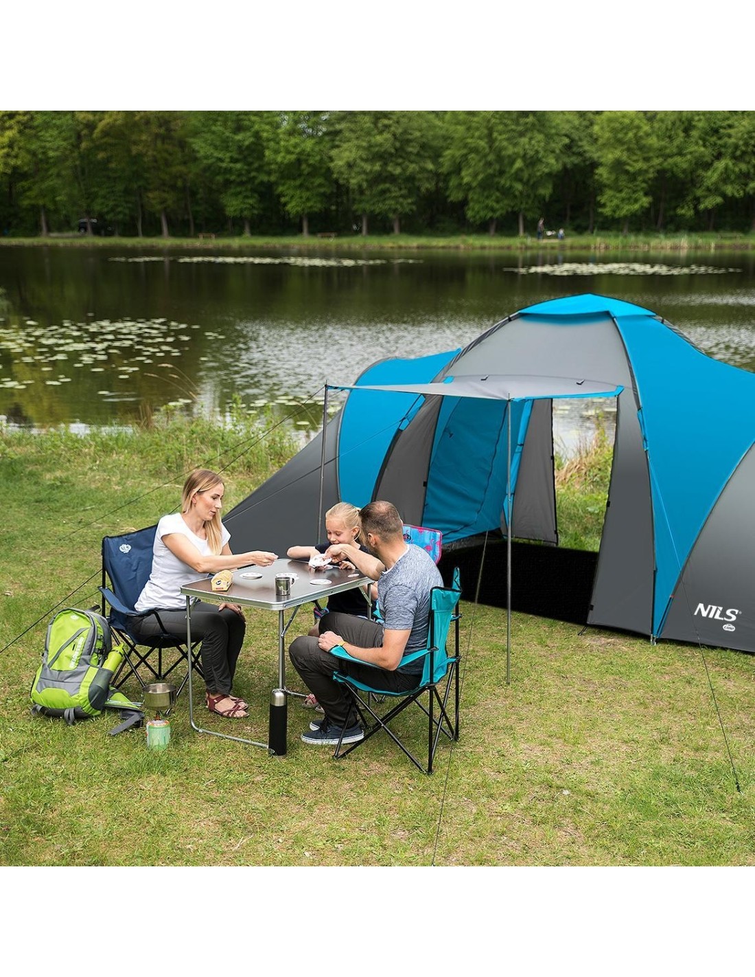 The Nils Camp NC6031 Highland hiking tent is the ultimate solution for weekend lake trips and long holiday camping. Highland is a double skin tent that has two separate, three-person bedrooms and a large vestibule with a floor for rainy evenings or storing camping gear. The tent can accommodate up to 6 people, which makes it extremely spacious and comfortable.