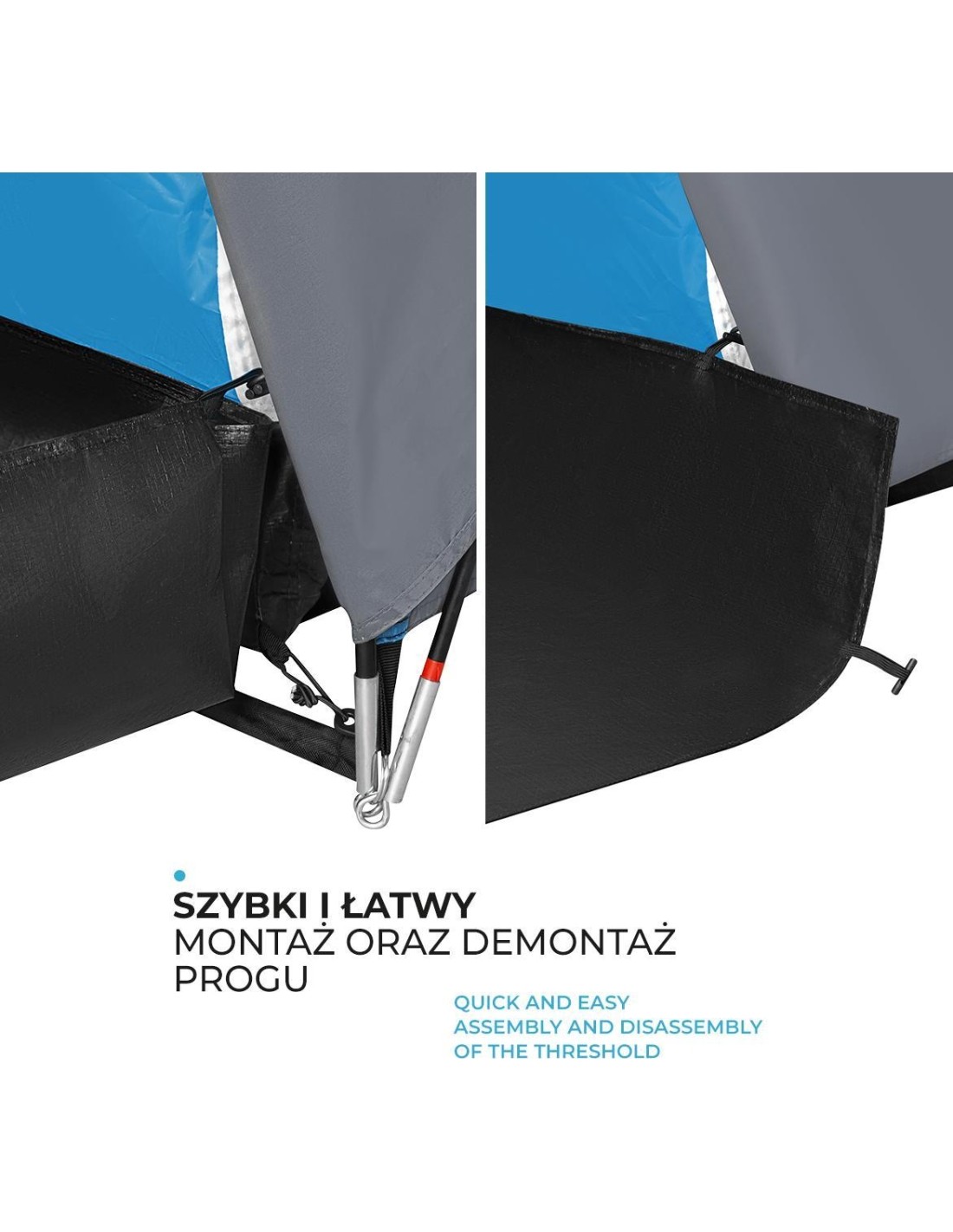 Highland tent, apart from two three-person bedrooms offers also a large vestibule with a floor with dimensions of 210cm long x 210cm wide x 200cm high, thanks to which being inside one can freely spend evenings or rainy days and store camping equipment or backpacks and boots for the night.